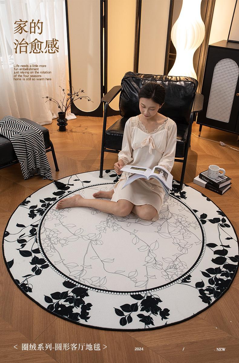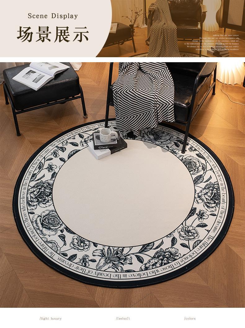 ラウンドカーペットリビングルームアンティークスタイルフレンチレトロベッドルームベッドサイドブランケットクロークフロアマットハイエンド2025新しいスタイル