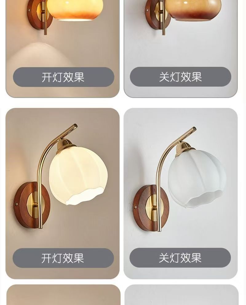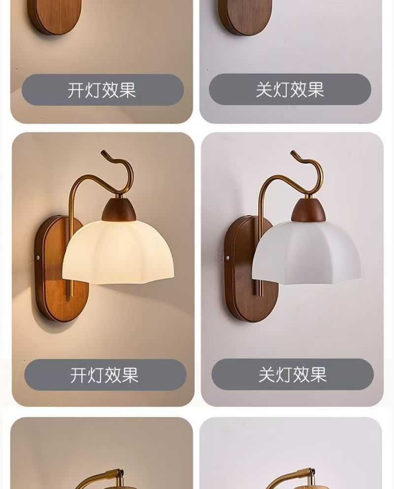 壁灯卧室床头灯复古中古风现代简约背景墙胡桃木色走廊书房过道灯