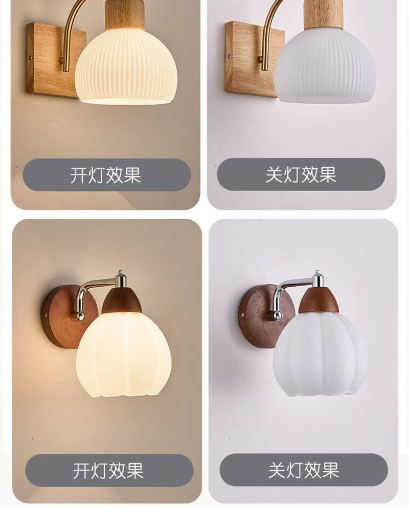 ヨーロッパ無垢材ウォールランプベッドサイドランプ寝室の背景壁北欧レトロクルミカラーミニマリストクリエイティブリビングルームled