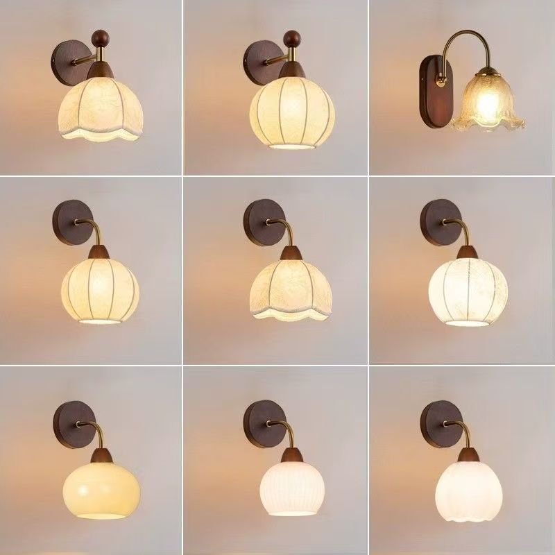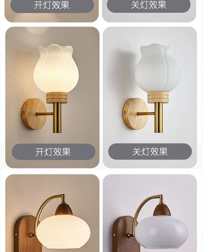 大観園壁掛け照明寝室ベッドサイドランプクリーム風リビング背景壁ランプ天然木和風新作綿灯L271