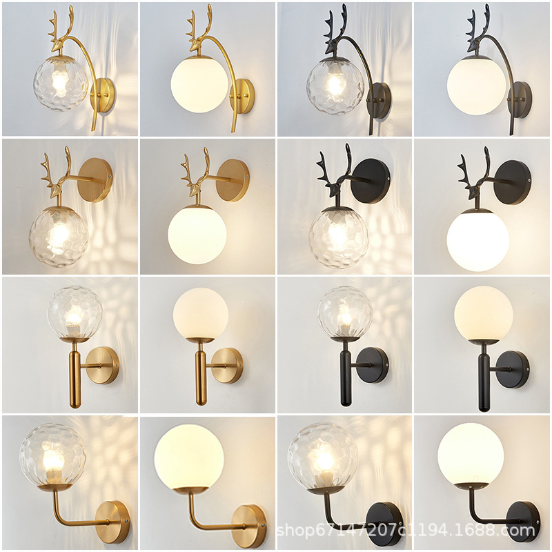 後現代水晶壁灯ベッドヘッドランプ寝室軽贅沢ファッションシンプル現代客間廊下背景壁灯階段