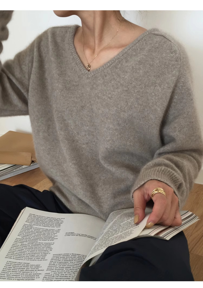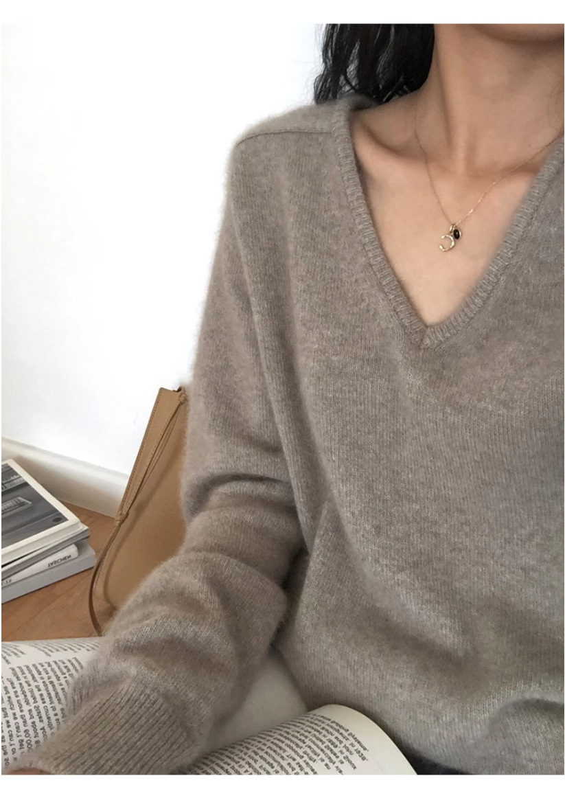 秋と冬の新しいヨーロッパ V ネックウールのセーターの女性の肥厚ルーズ怠惰なスタイルのセーター多用途無地ニット底シャツ