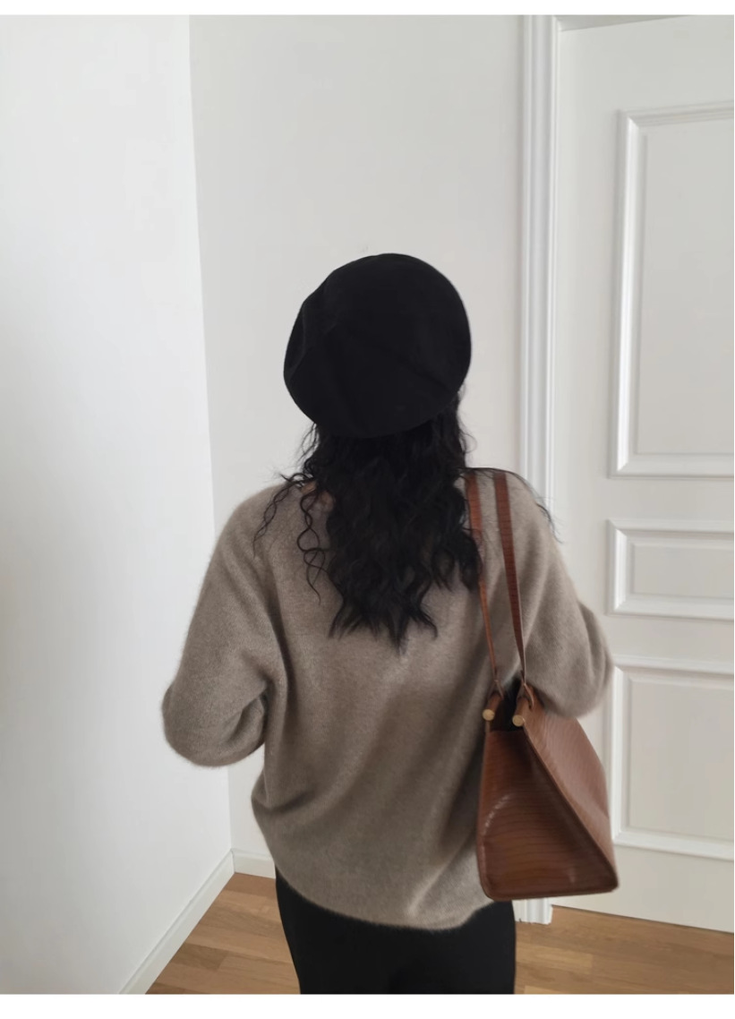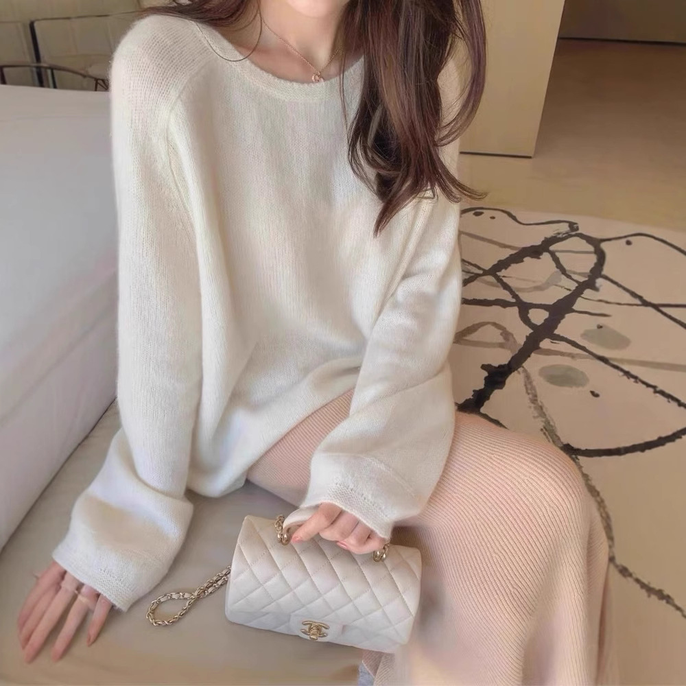 100%纯羊毛圆领女士套头纯色宽松休闲时尚简约软糯保暖针织打底衫