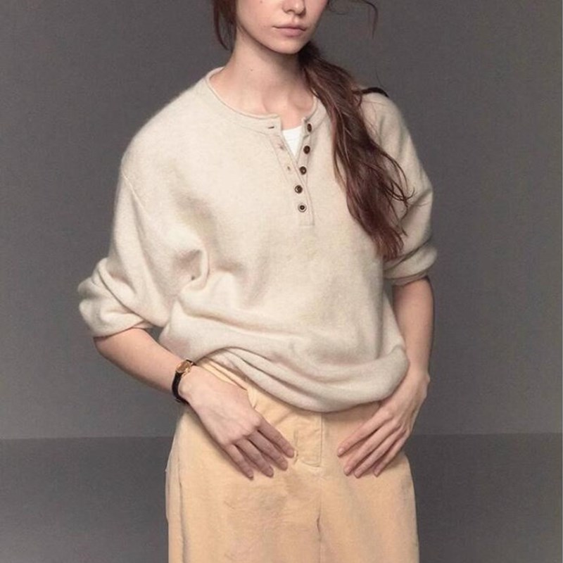 秋冬新款纯羊毛亨利领毛衣女柔糯亲肤不扎时尚百搭羊毛衫纯色上衣