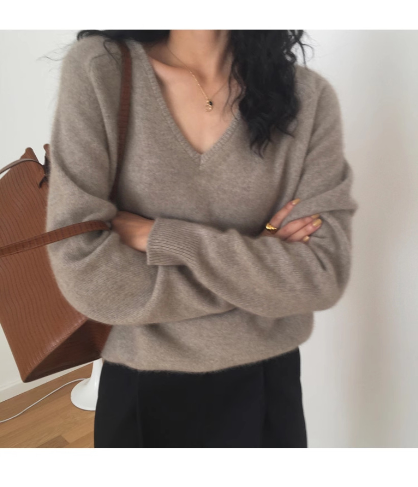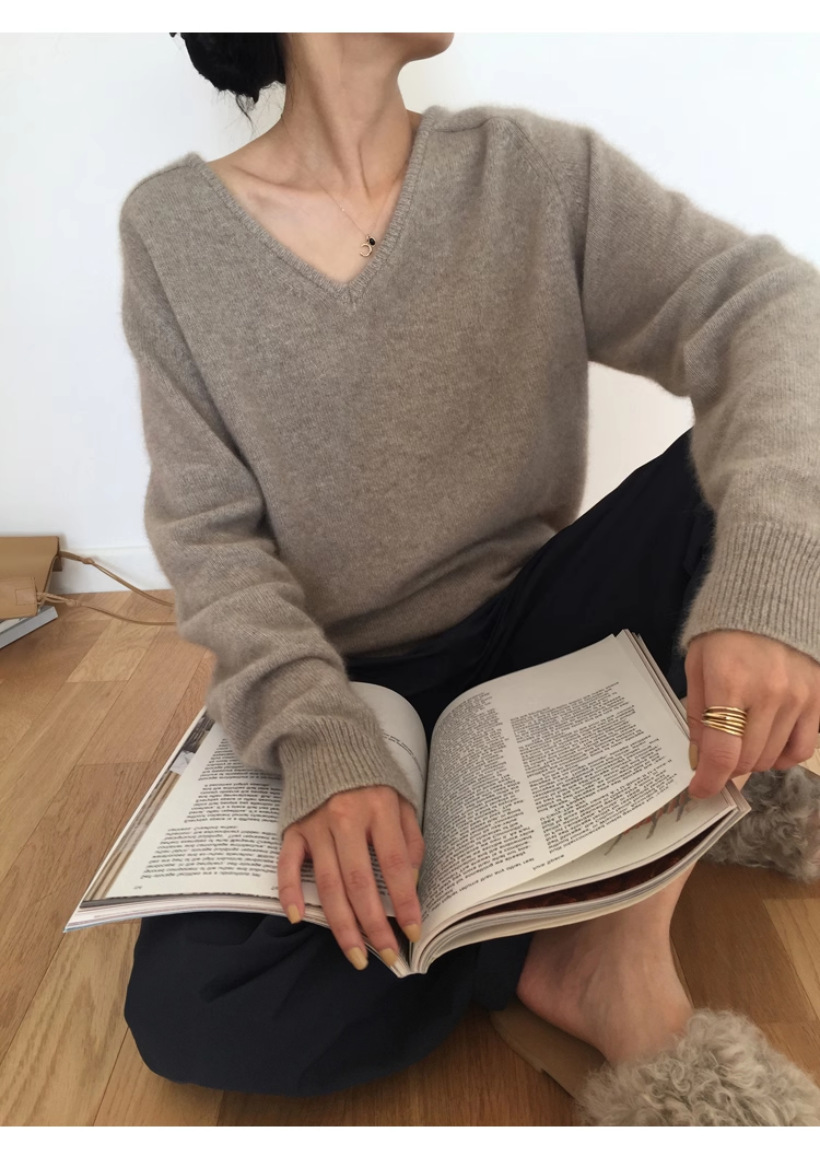 新款秋冬100%纯羊毛衫女V领长袖软糯毛衣韩版宽松针织纯色打底衫