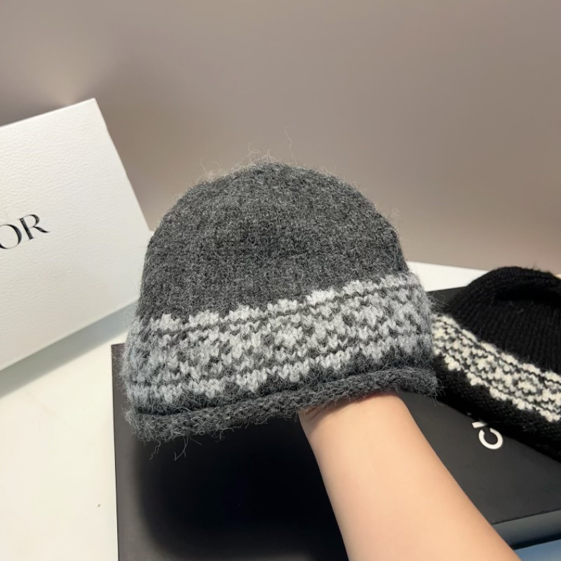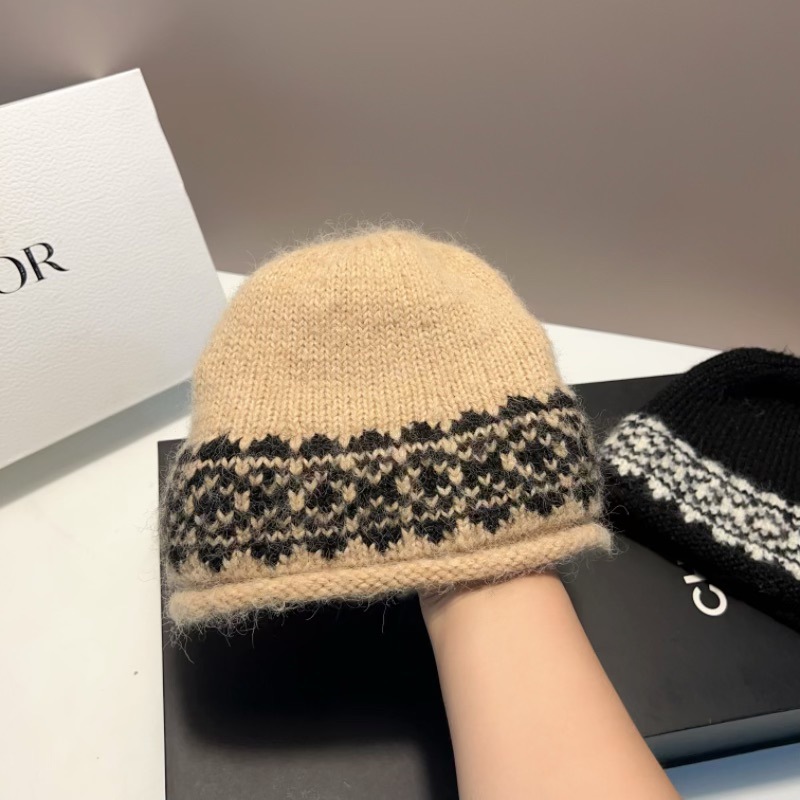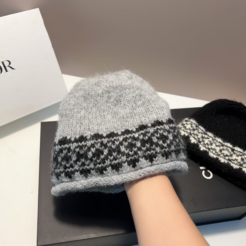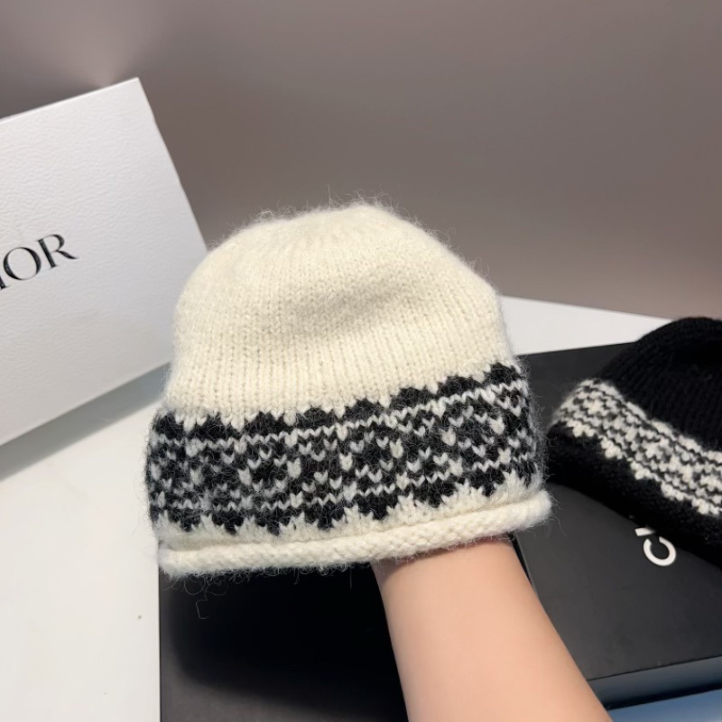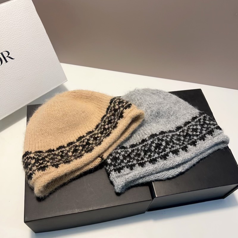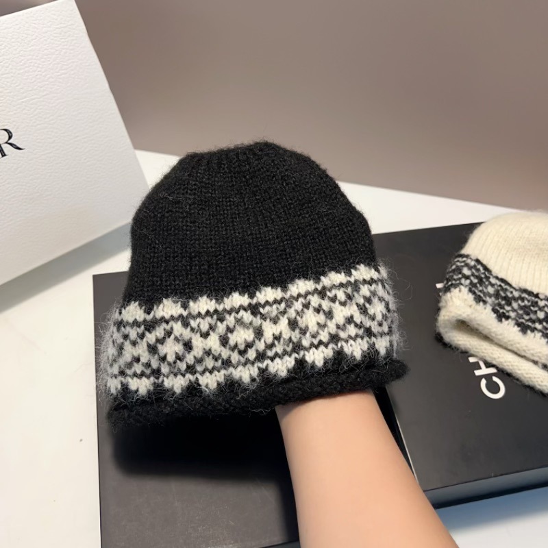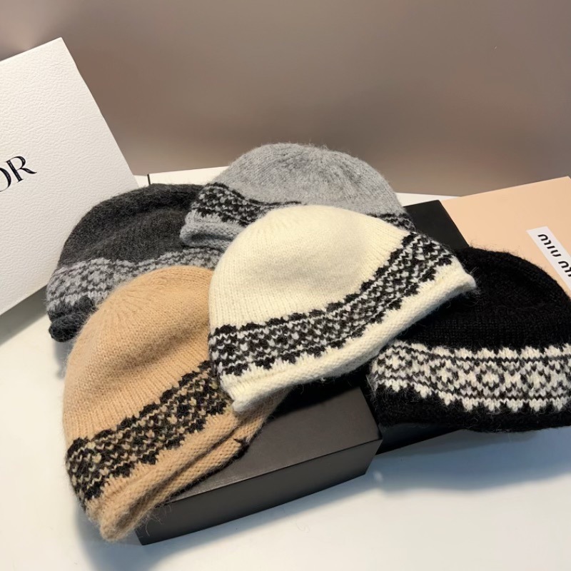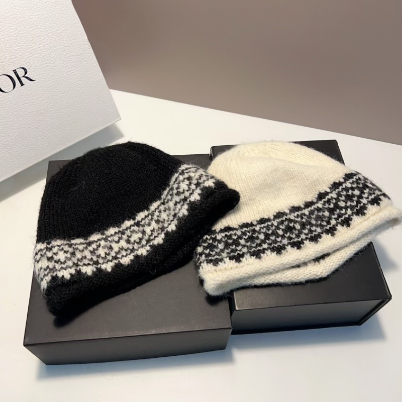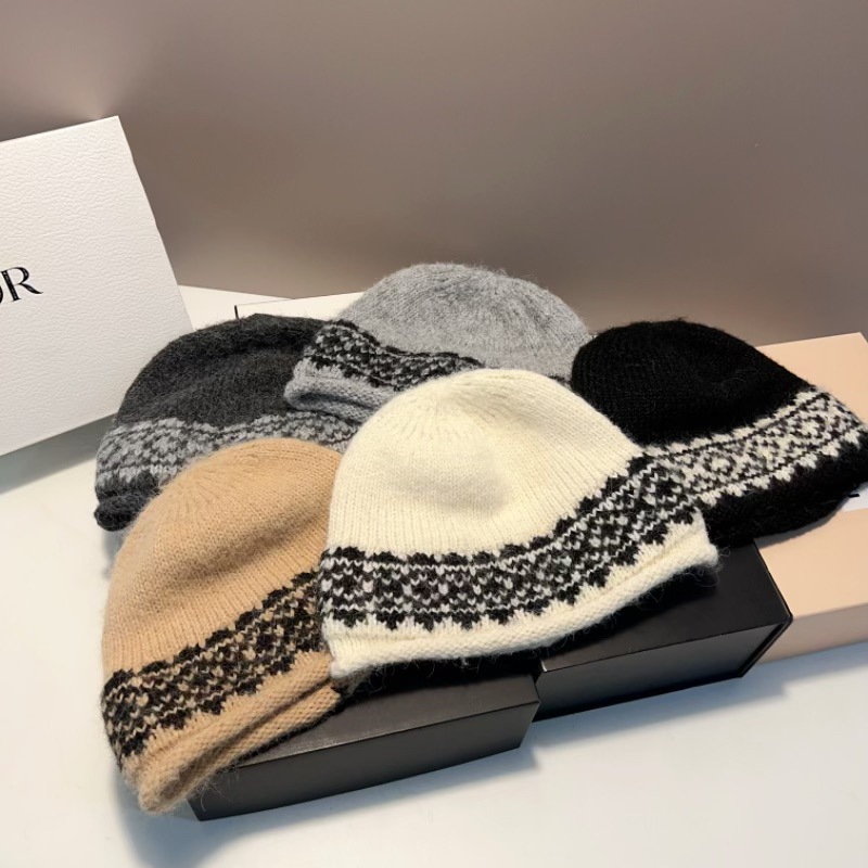 韩国小众羊毛混纺网红百搭休闲提花针织帽护耳保暖渔夫盆帽男女