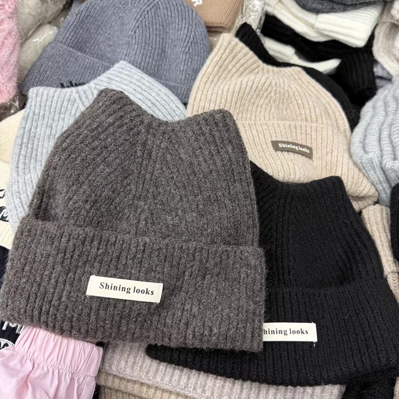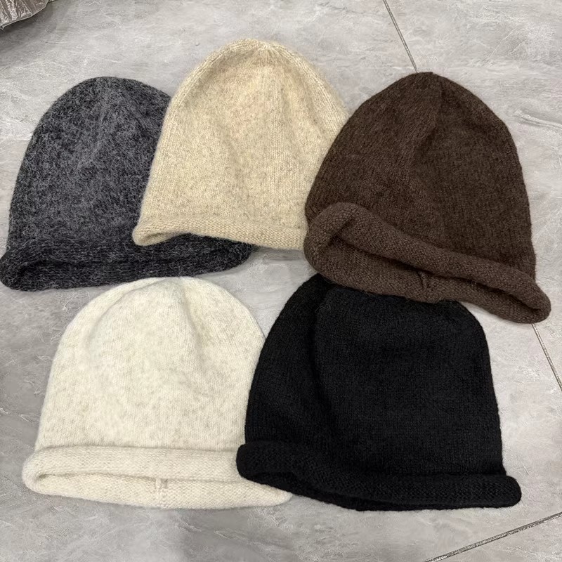 韩版纯色兔毛毛线帽女秋冬保暖帽子百搭简约针织帽冬季加厚冷帽潮