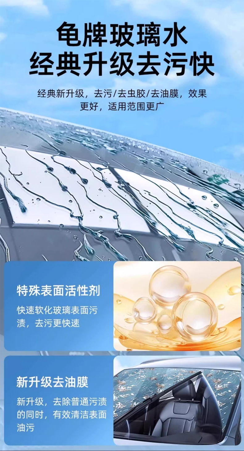 龟牌玻璃水汽车四季通用强力去污去油膜车用雨刮水清洗硬壳盾夏季