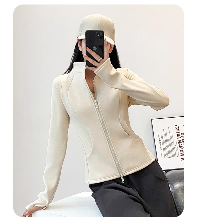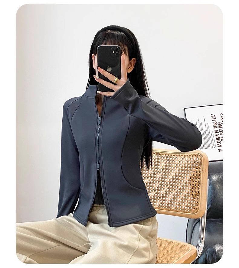 【绢糸ウール】立襟とベルベットが秋冬の女性に合わせて痩せたジッパーのヨガコート6221