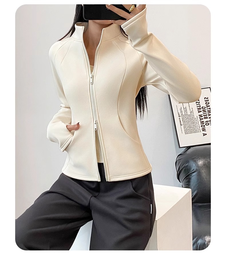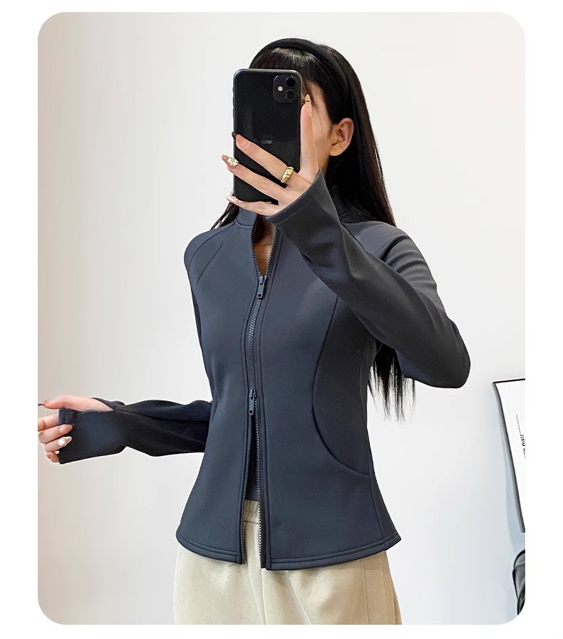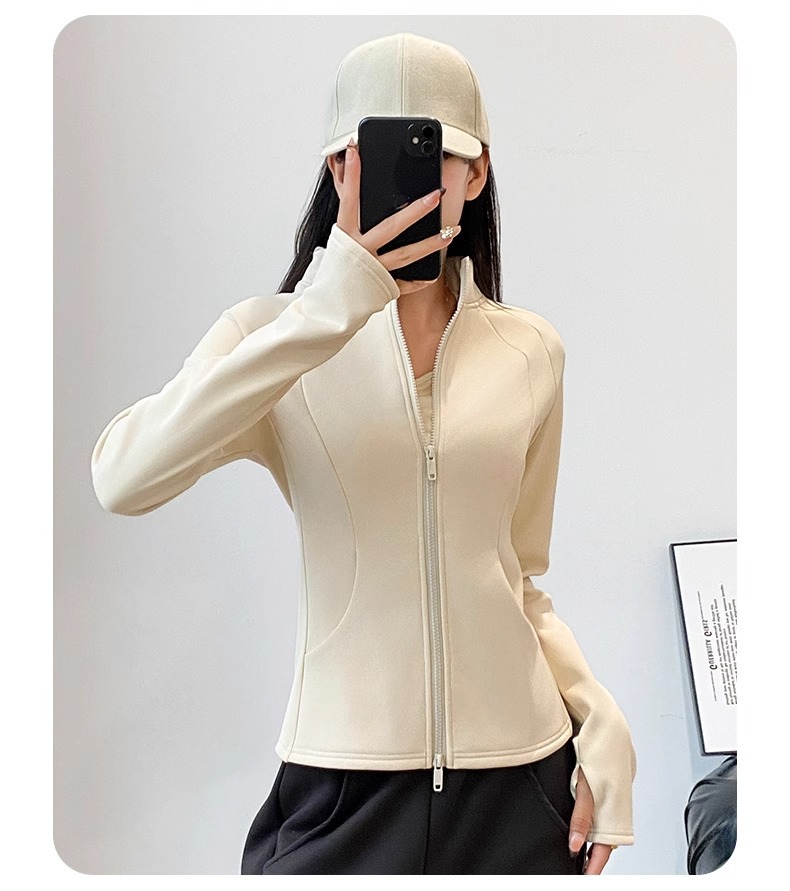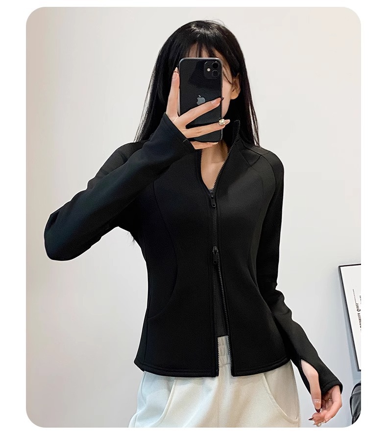 保暖加绒加厚瑜伽外套女拉链开衫立领修身显瘦弹力长袖春款上衣