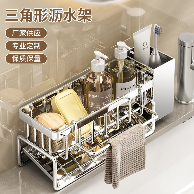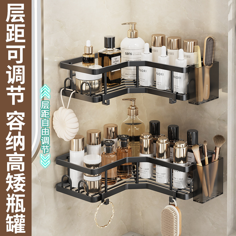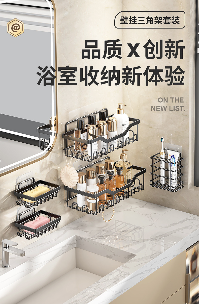铁艺三角置物架浴室免打孔收纳架卫生间墙角壁挂铁艺整理架子跨境