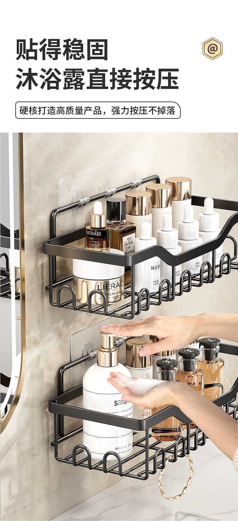 免打孔方形双层收纳架肥皂架浴室沥水架牙刷架吸盘壁挂式置物架