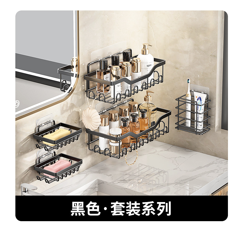 跨境铁艺三角架浴室壁挂式收纳架免打孔卫生间厕所洗漱用品置物架