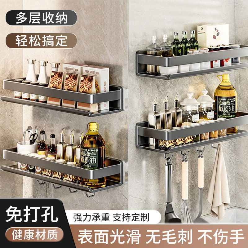 パンチフリー壁掛け多機能キッチン収納ラックスパイスラック油塩ソース酢収納ラックバスルーム収納ラック