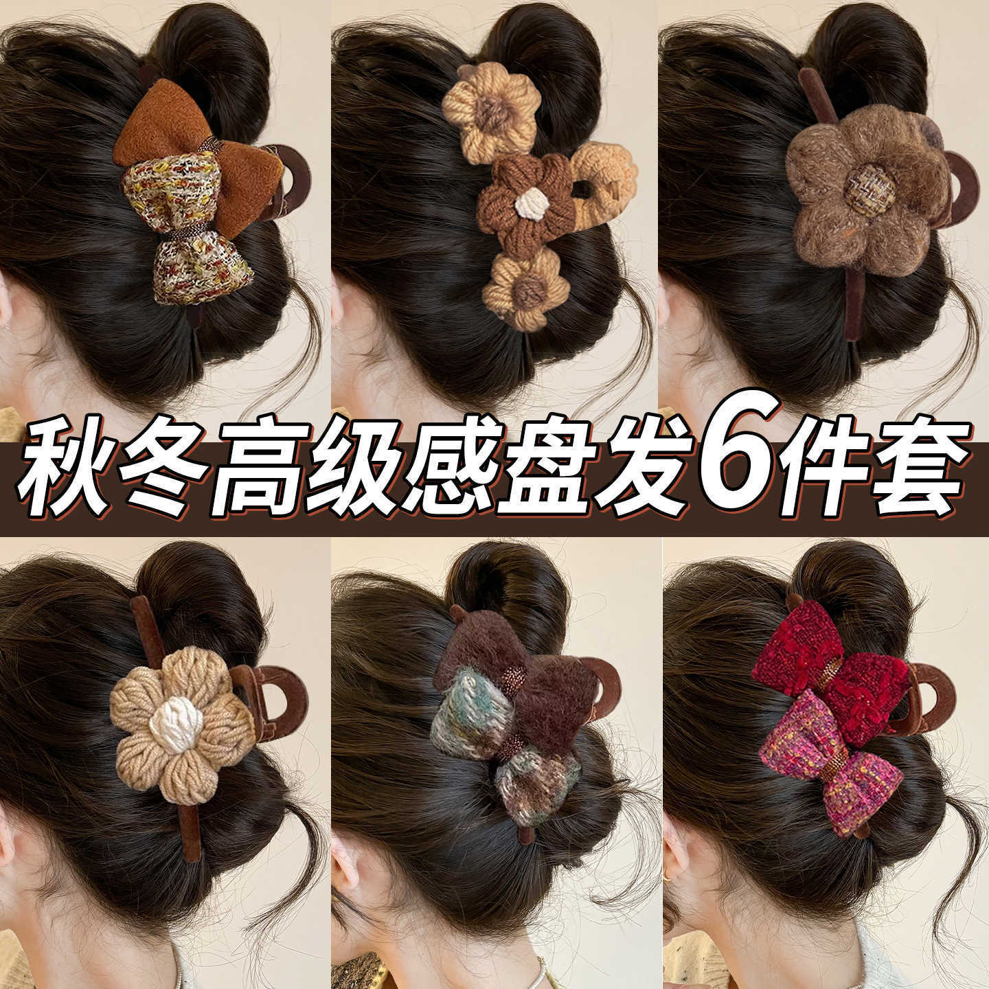 复古针织蝴蝶结发夹女高级感秋冬抓夹后脑勺鲨鱼夹子气质发卡头饰