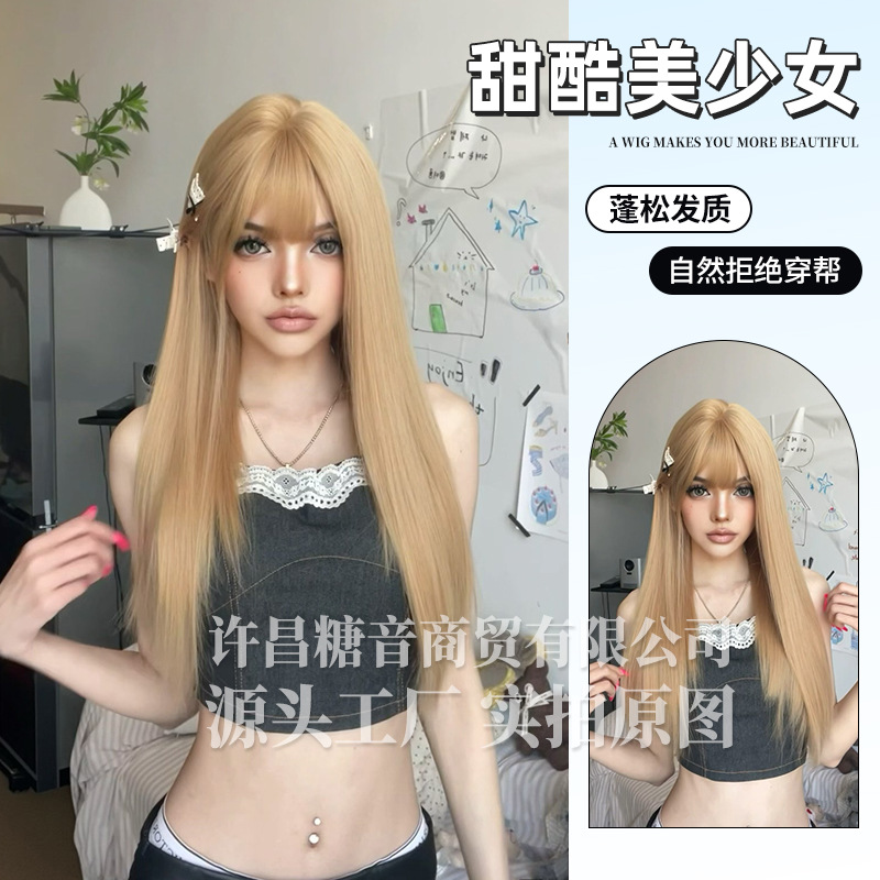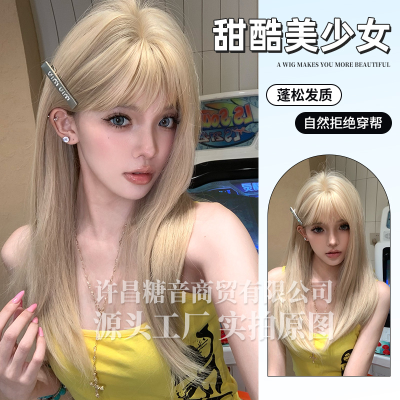 糖音假发女跨境日常时尚女团金发自然夏季新款全头套假发
