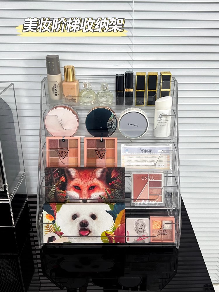 吧唧展示架阶梯式桌面立牌谷子透明竖款收纳盒徽章多层阶梯置物架