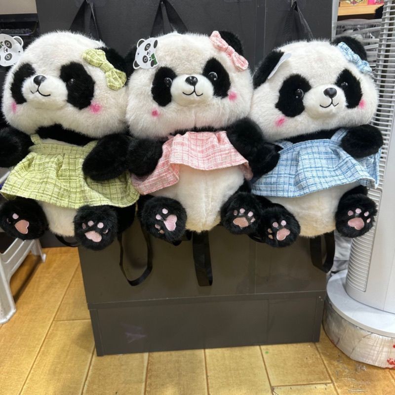 新款可爱熊猫花花公仔背包双肩包卡通儿童玩偶熊猫纪念品毛绒包女