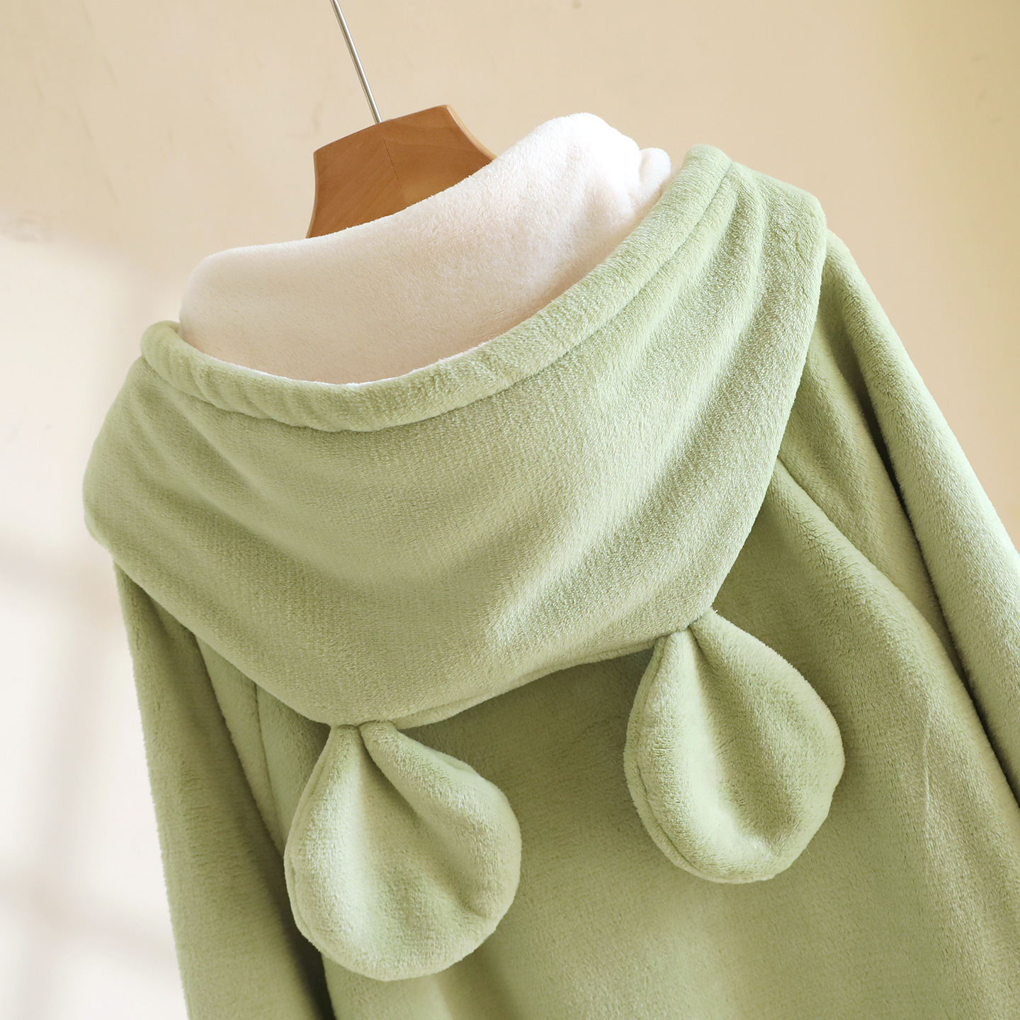 秋冬モデルのフランネルと帽子のパジャマのカーディガンの女性とベルベットの厚い冬の暖かいサンゴのベルベットのパジャマの家の服