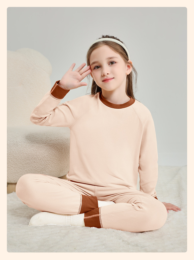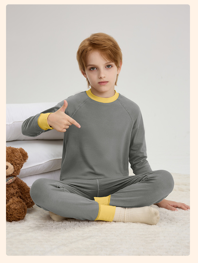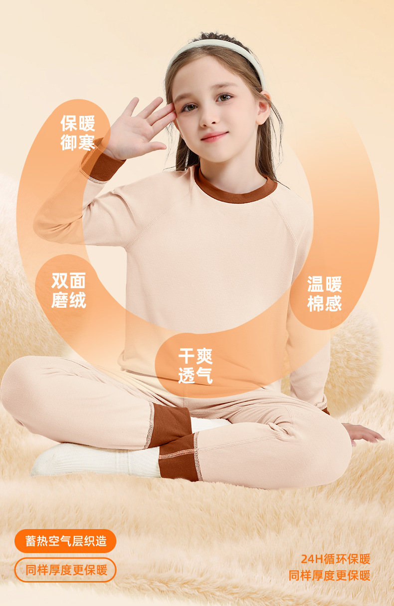 中大童保暖内衣套装秋冬云锦绒双面磨毛家居服无骨弹力青少年睡衣