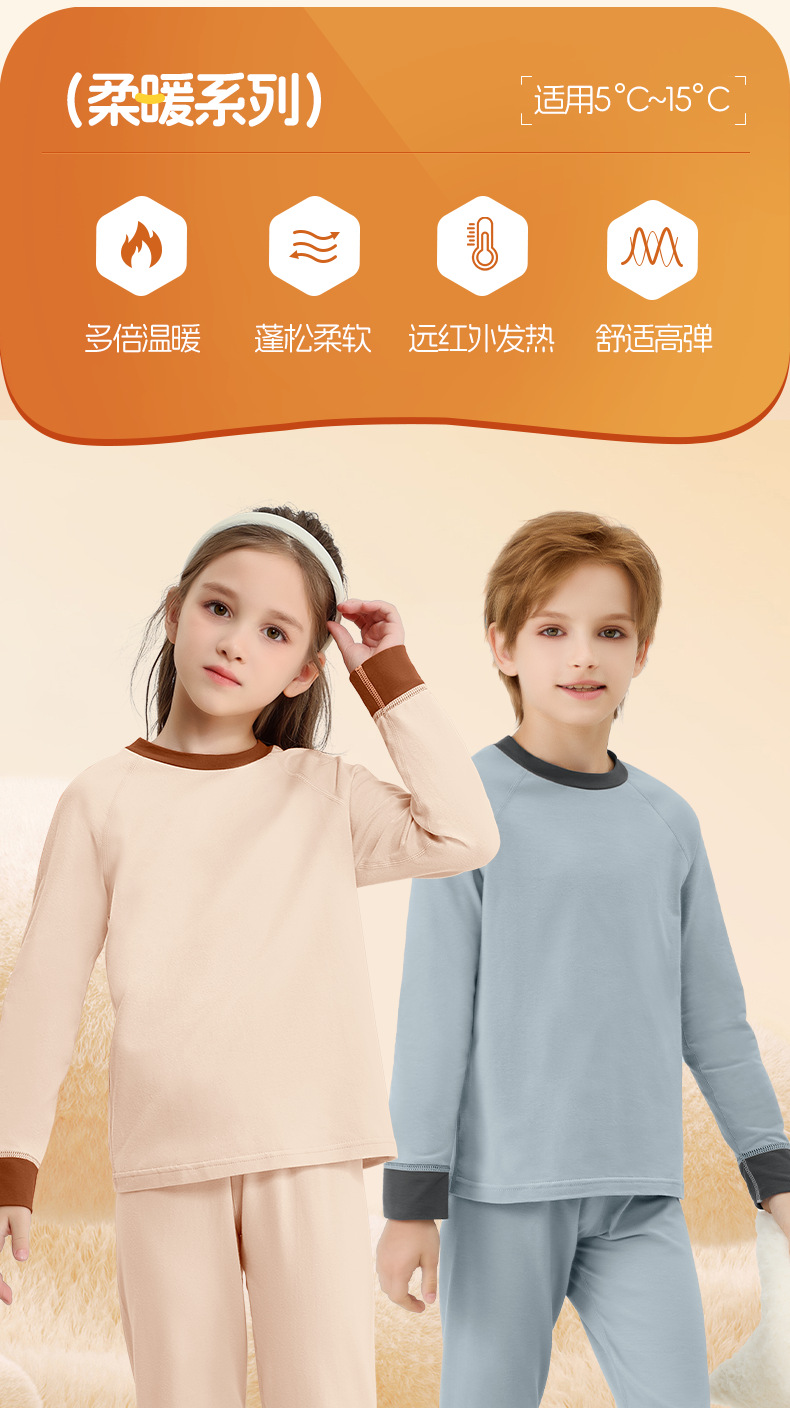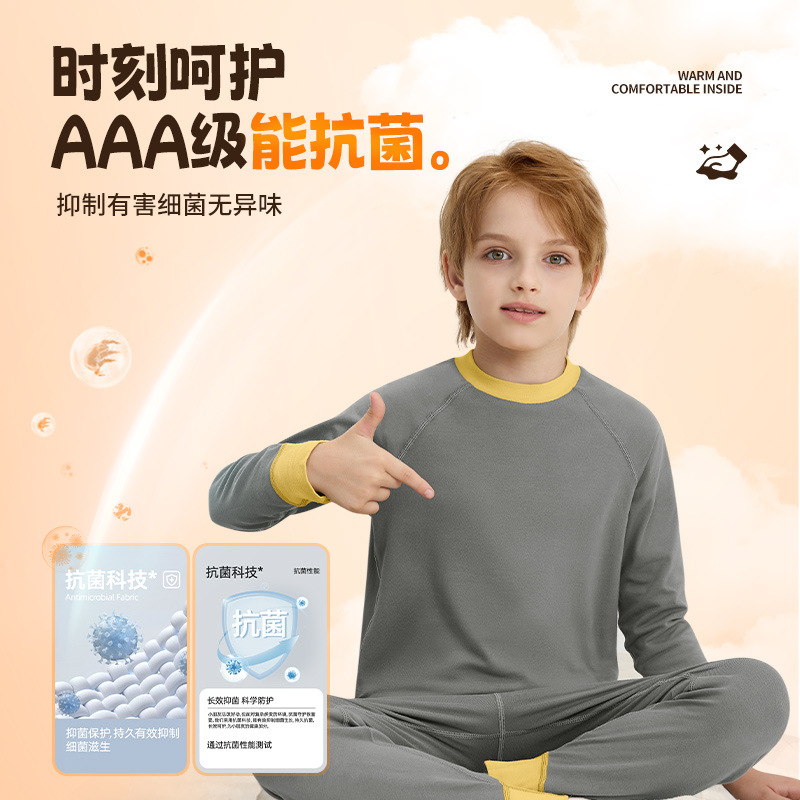 男女儿童保暖抗菌家居服秋冬打底衫宝宝加厚睡衣秋衣秋裤发热套装