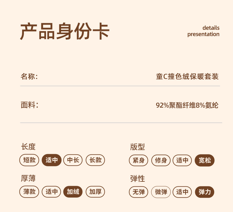货号 童C撞色绒保暖套装
