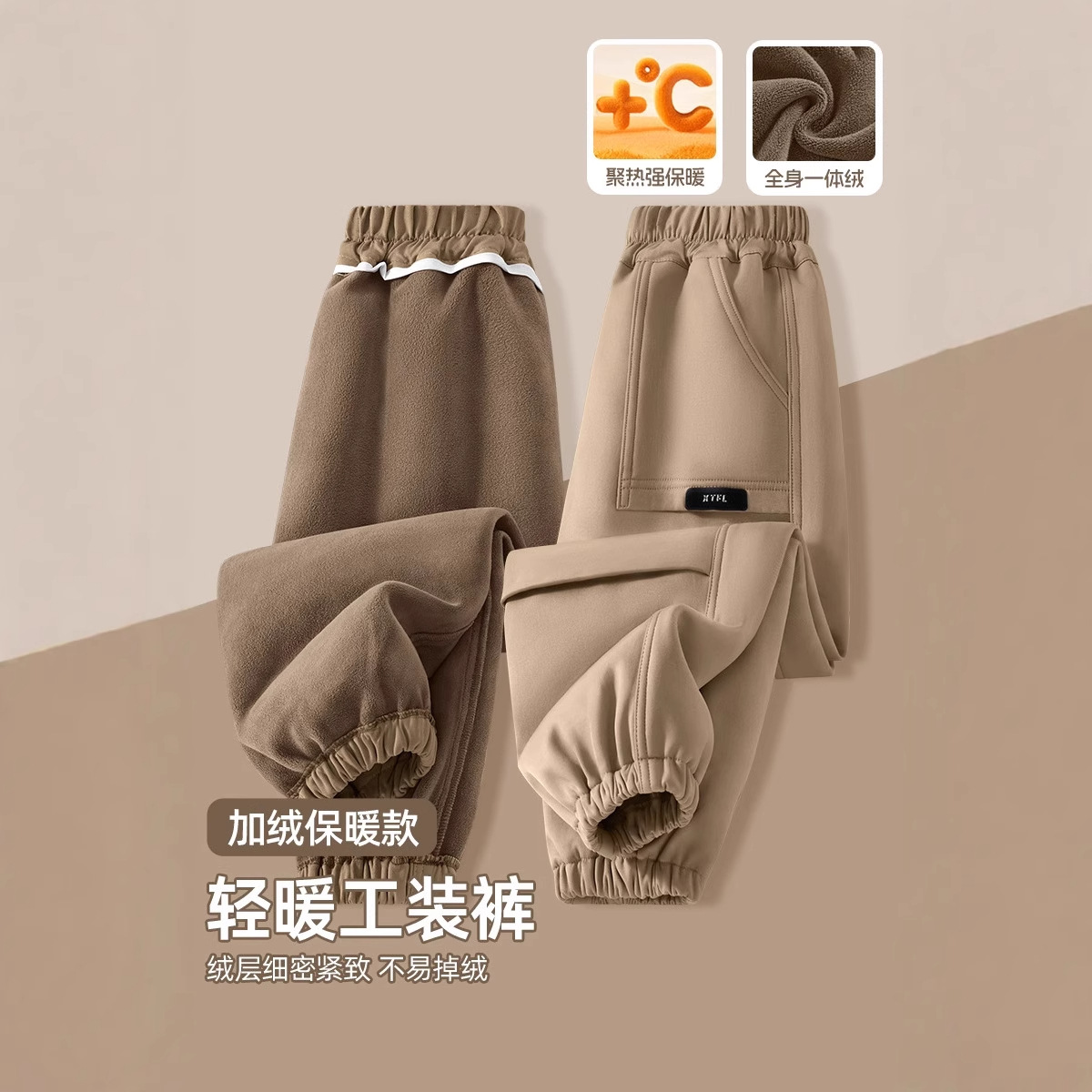 2025冬款防风加绒卫裤 儿童冬季新款加绒伞兵裤 男女童一体绒卫裤