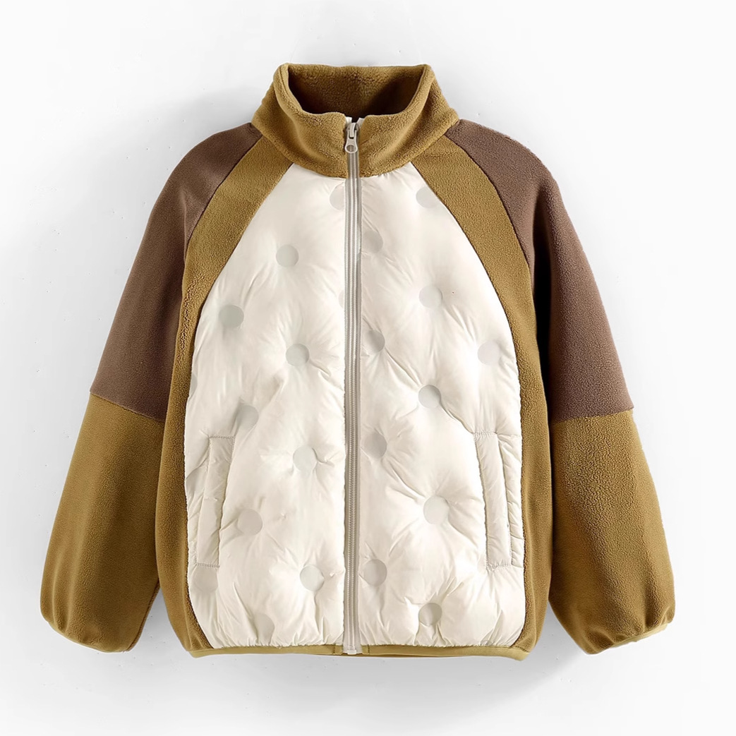 男女の子供と秋の子供のカジュアルなフリースのコートの中で大きい子供の赤ちゃんは厚い保温の中で上着の子供服を掛けます。