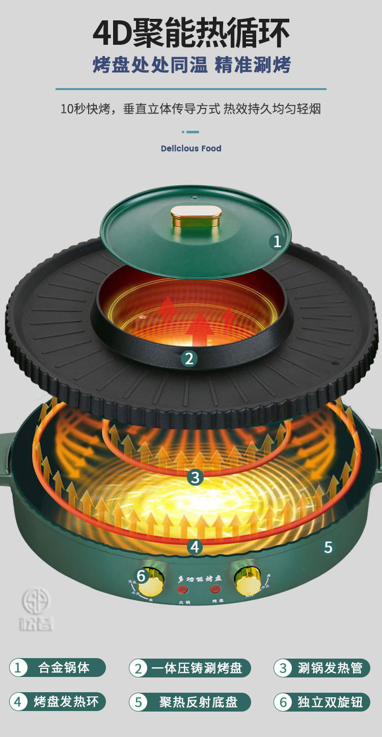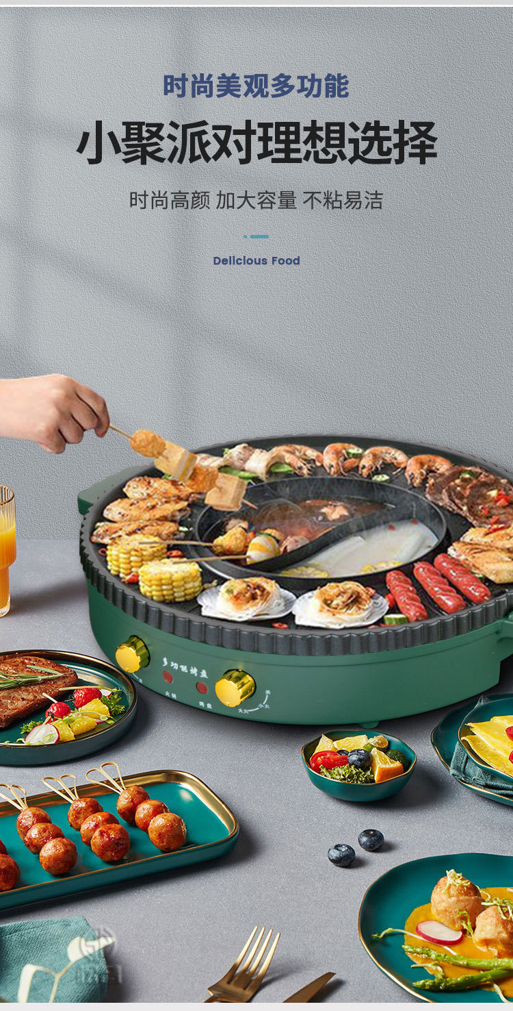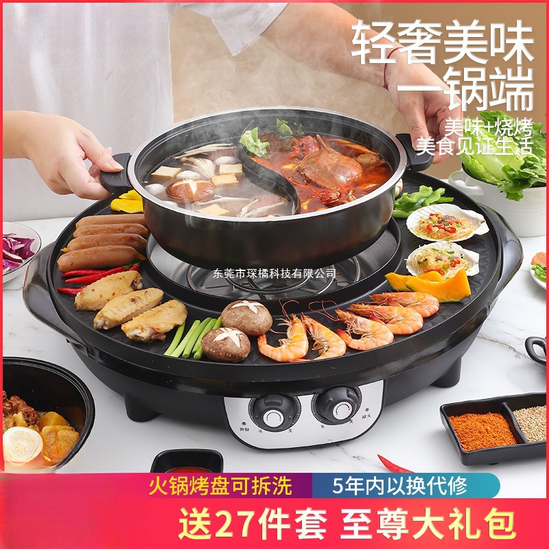 家用多功能火锅烧烤一体锅涮烤电烧烤炉两用烤盘无烟火锅锅烤肉机