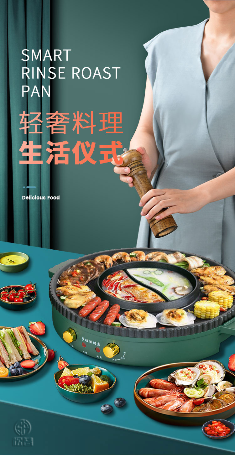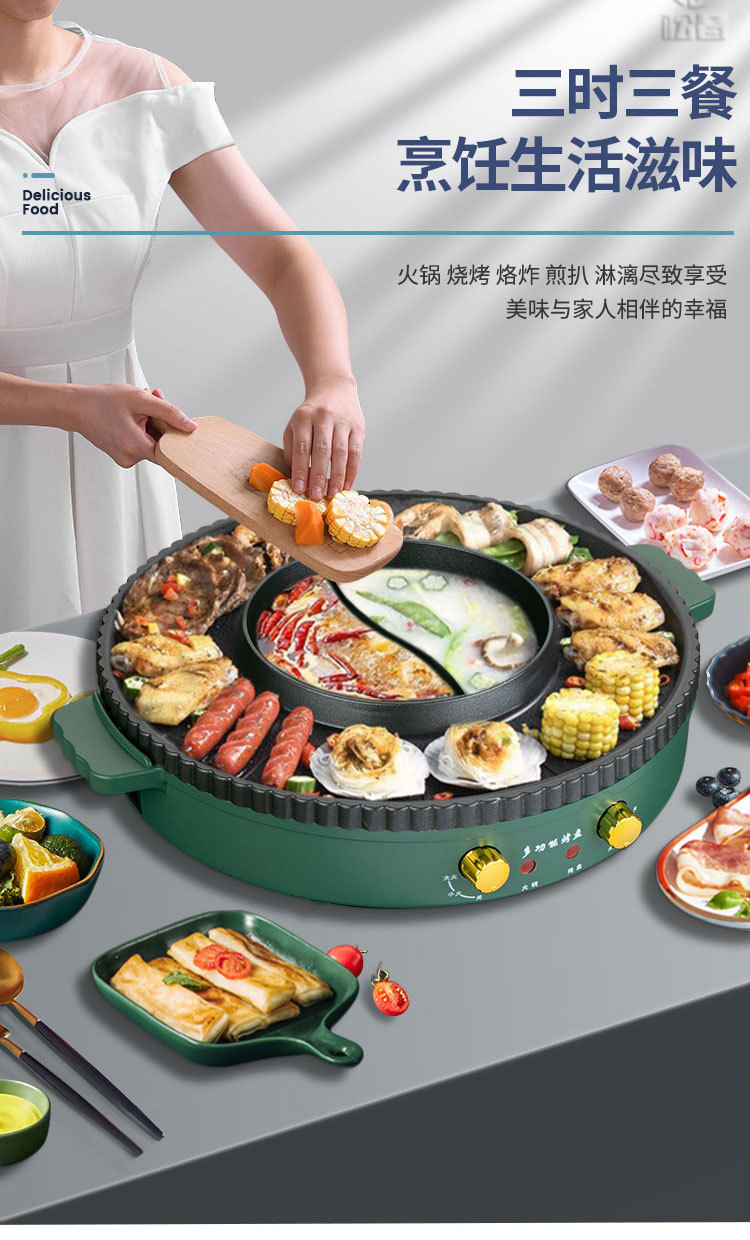 家庭用多機能電気グリル一体型電気鍋 家庭用電気しゃぶしゃぶ鍋 ギフト鍋