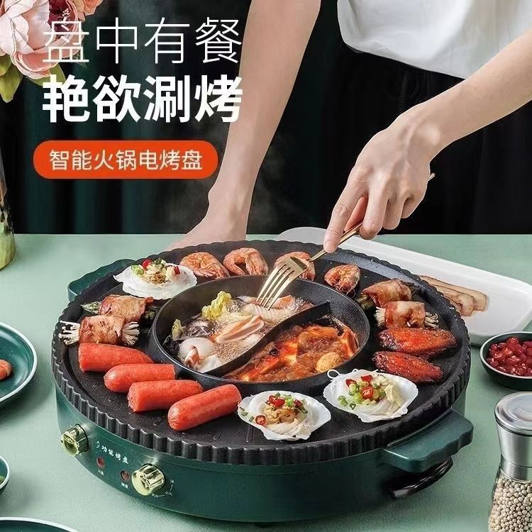 多功能火锅锅电烧烤炉一体锅家用韩式烤盘涮烤两用烤肉烤鱼机