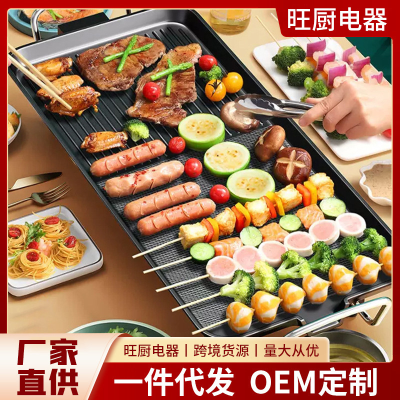多機能電気グリルパン卸売電気グリル家庭用屋内オイルフリーパングリルパンバーベキューポットノンスティック電気調理鍋