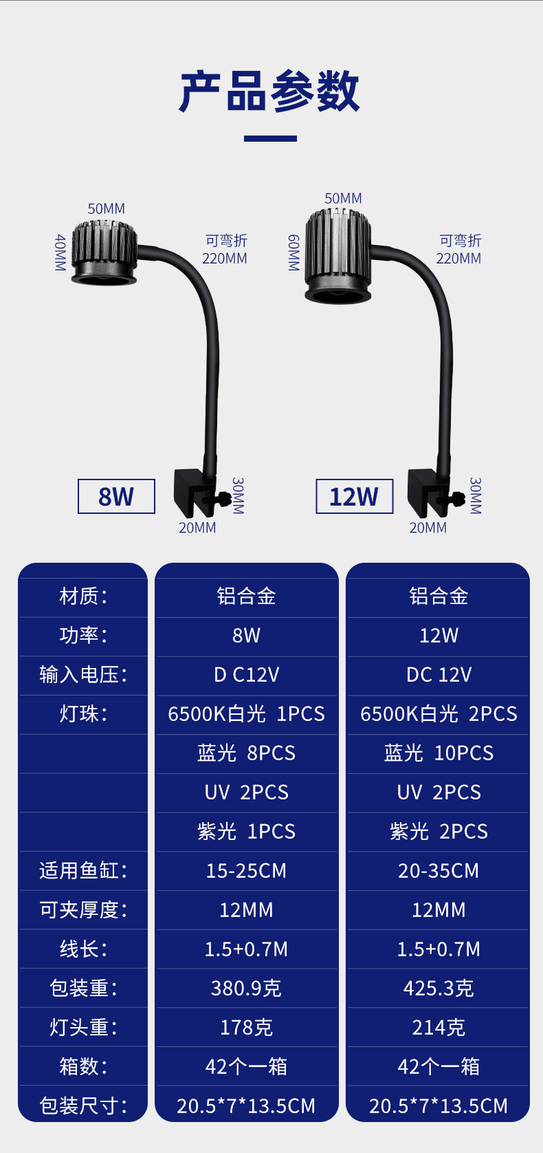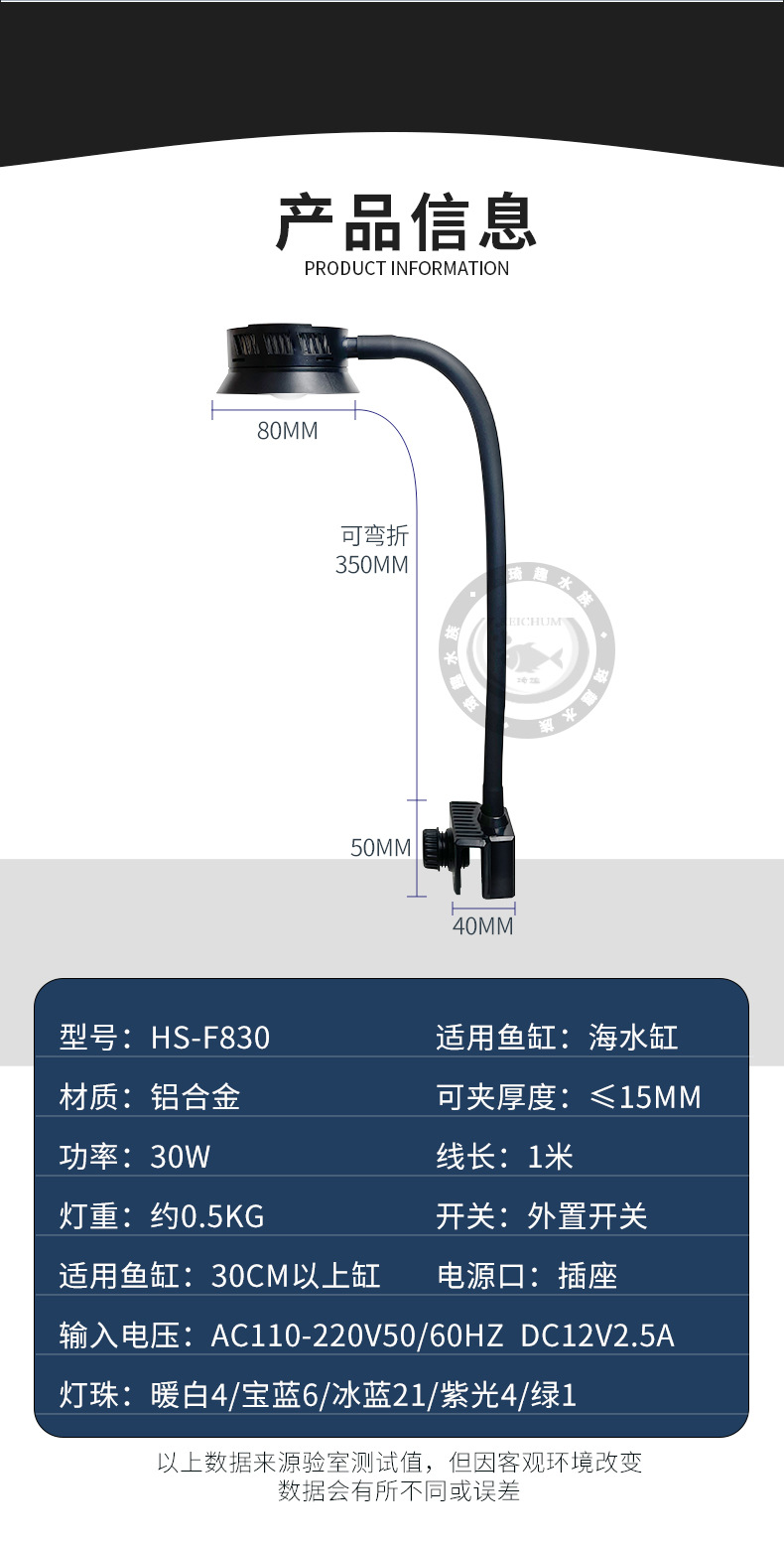规格 HS-F830海缸灯30W【适30以上缸】,HS-F860海缸灯12W 【适20-35缸】,HS-F860海缸灯8W 【适15-25缸】