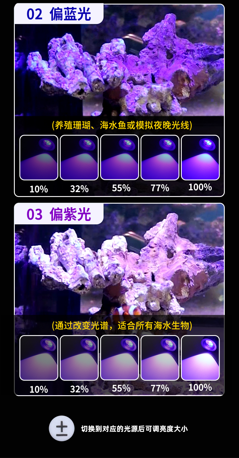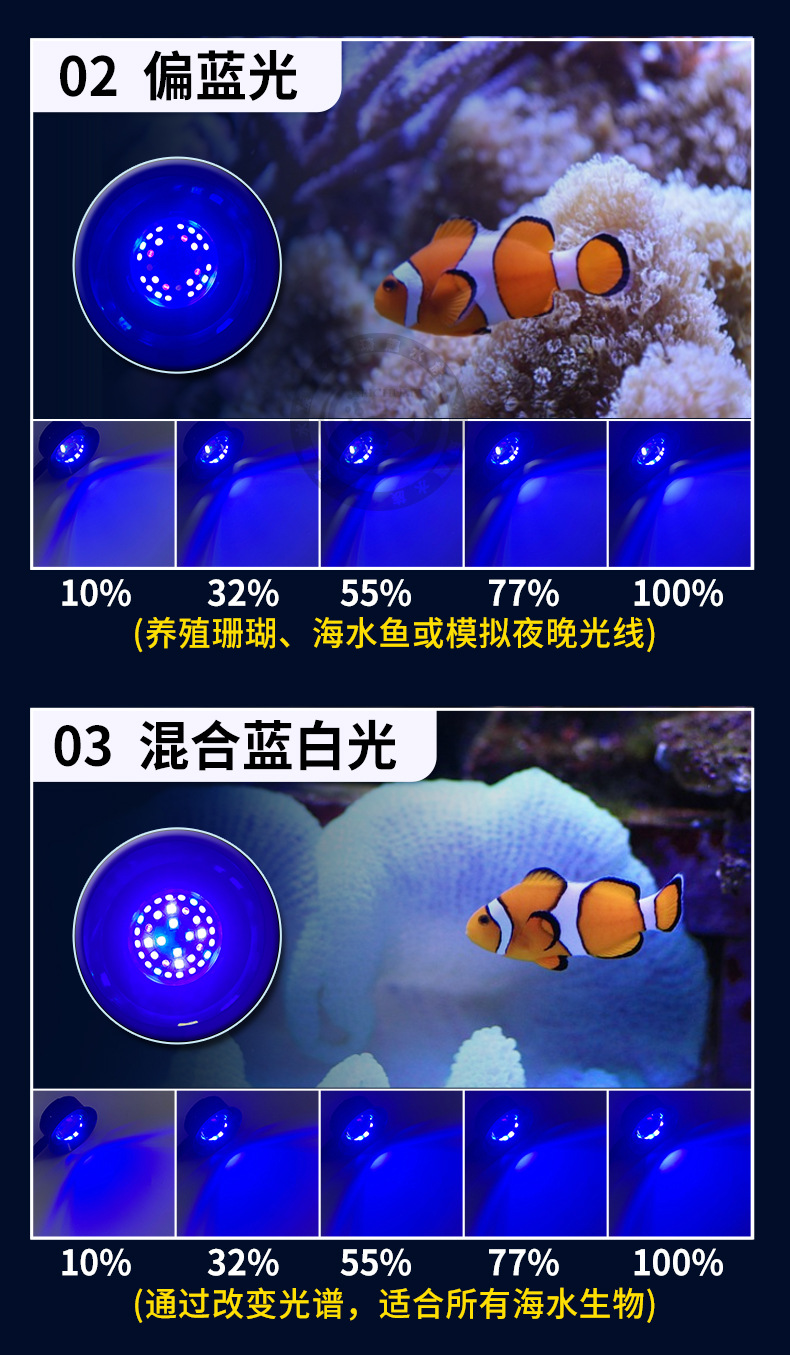 跨境专供海缸珊瑚灯深海光谱含UV激发荧光蛋白高亮透镜升级智能