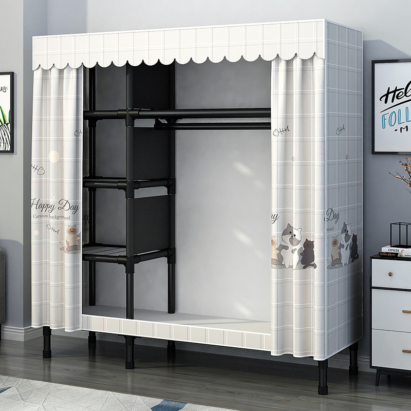 シンプルなワードローブ、自宅の寝室の組み立て布製ワードローブ、全鋼フレーム、厚く、丈夫で耐久性のある賃貸住宅のワードローブ