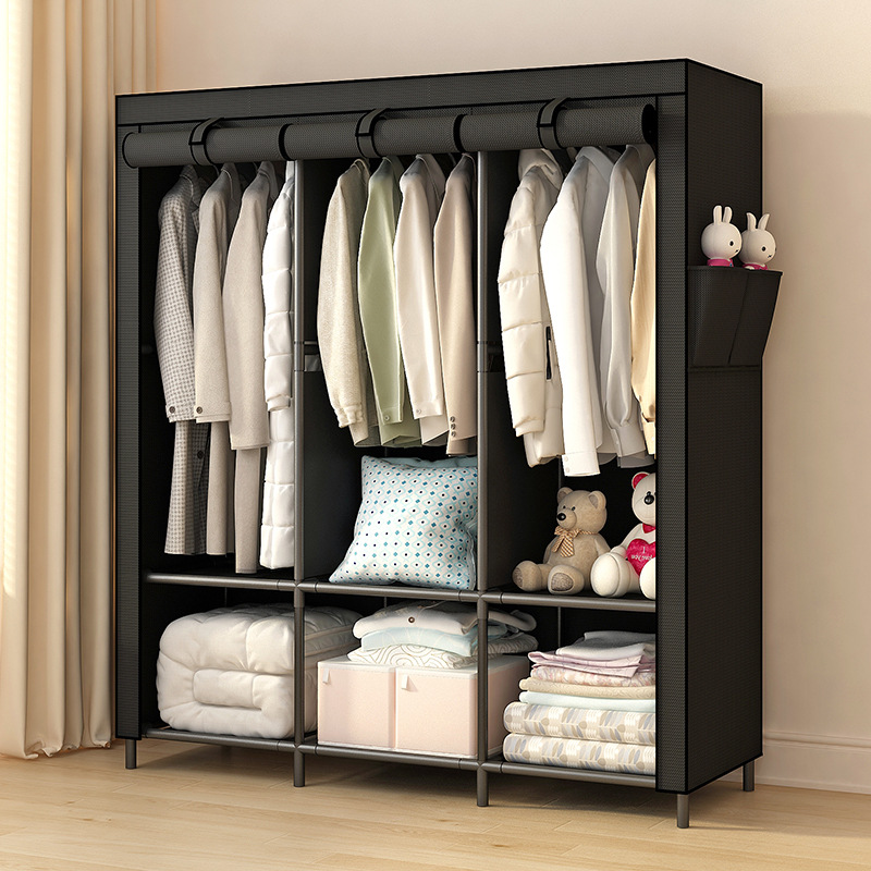 シンプルな布製ワードローブ、自宅の寝室、賃貸住宅、全鋼フレーム、頑丈で耐久性のある、小さなアパート、経済的な収納布製ワードローブ