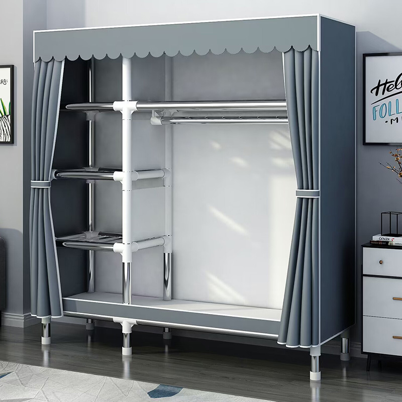 Amazonクロスボーダーワードローブホームベッドルームシンプルな組み立て布ワードローブレンタルルーム用鋼管厚く強化された寮