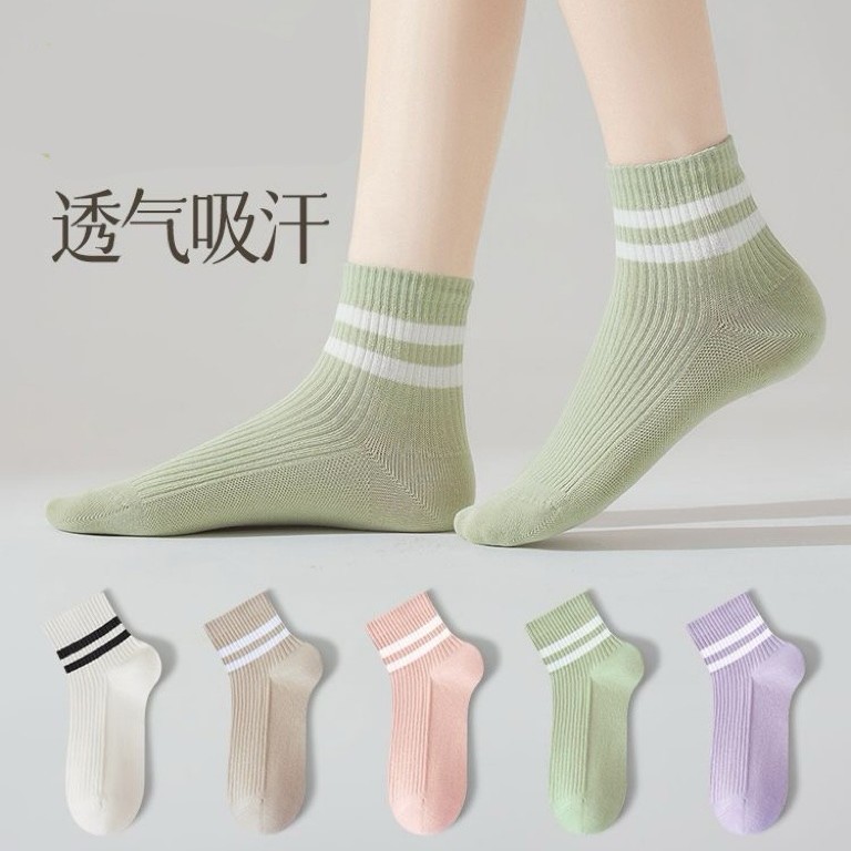 Zhuji Socks ソックス レディース ミッドチューブソックス 春と夏 消臭 吸汗性 通気性 パラレルバー スポーツ グリーン ショートソックス イン
