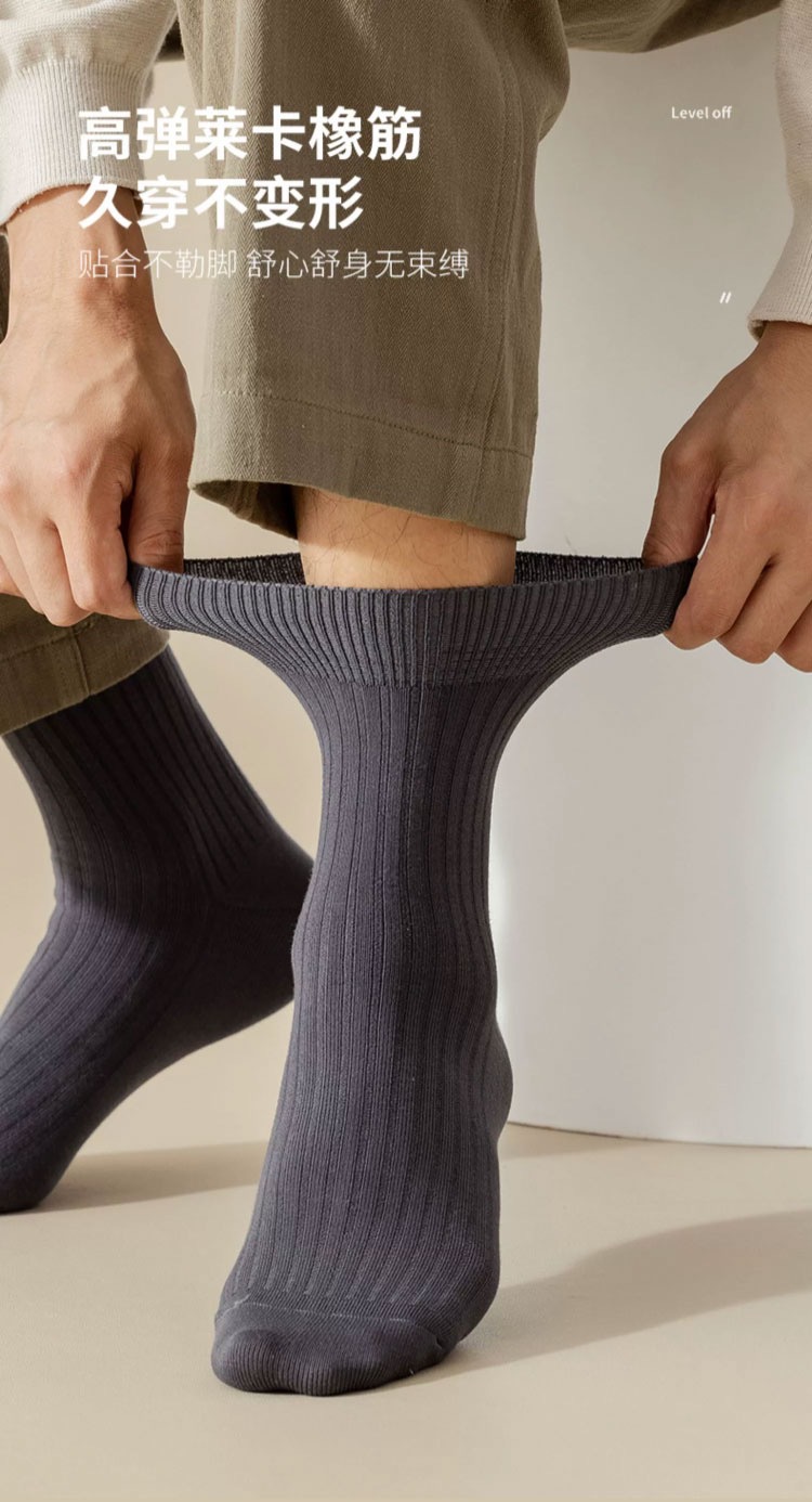 纯棉袜子秋冬男士袜子男士商务正装商务袜简约百搭透气纯色中筒袜