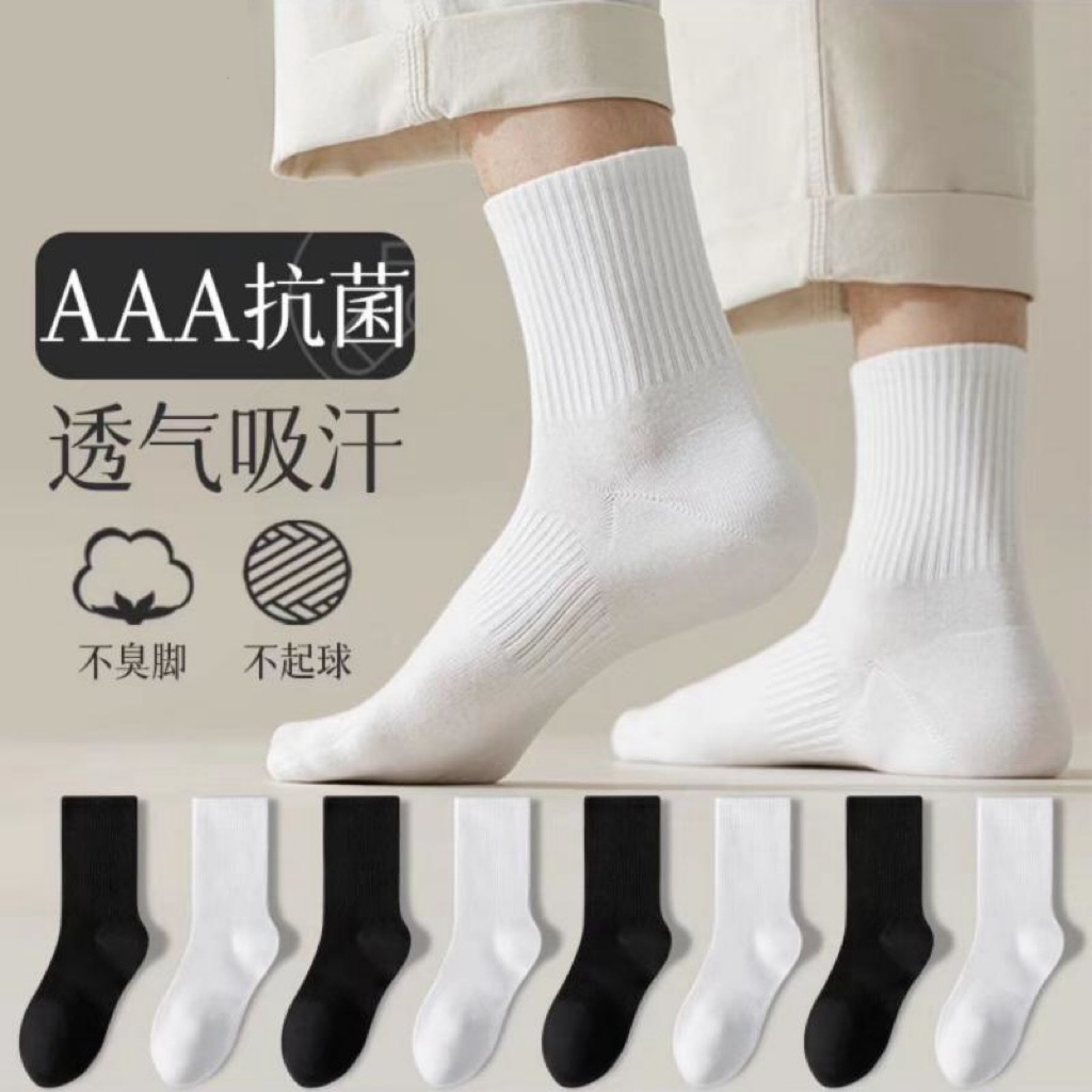 7A抗菌袜子男秋冬款中筒棉袜纯色运动袜防臭吸汗抗菌新疆棉长筒袜