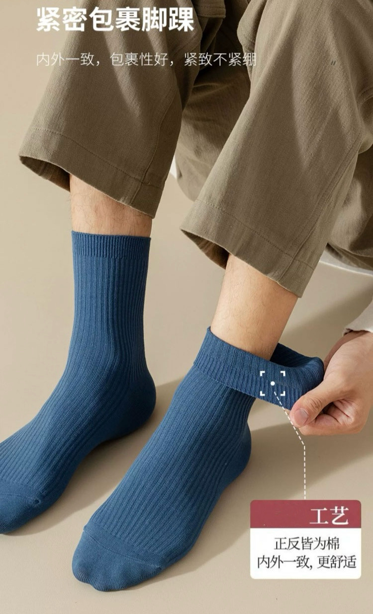 100%纯棉袜子男中筒袜秋冬季长筒袜吸汗防臭男袜全棉商务男士短袜