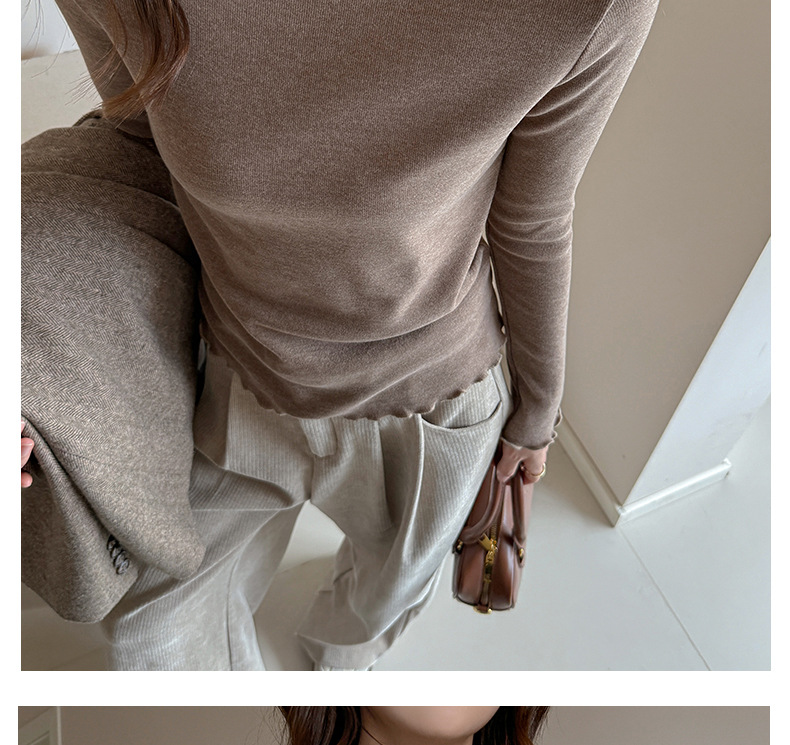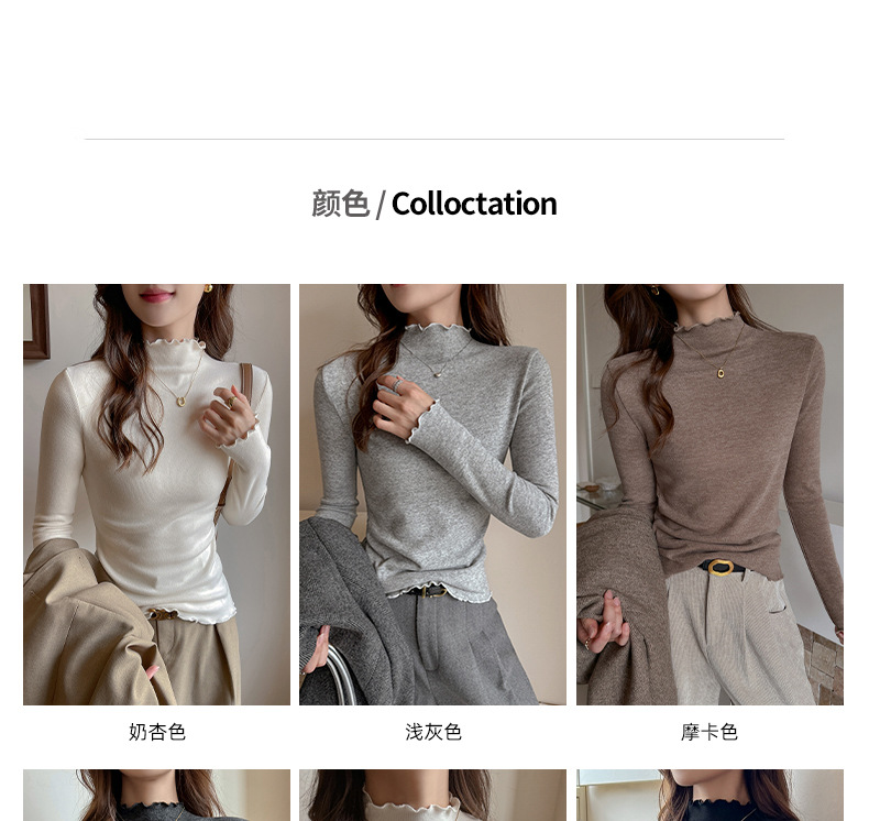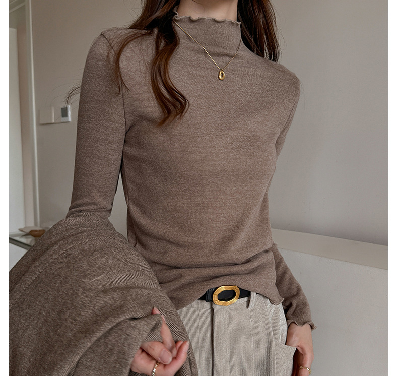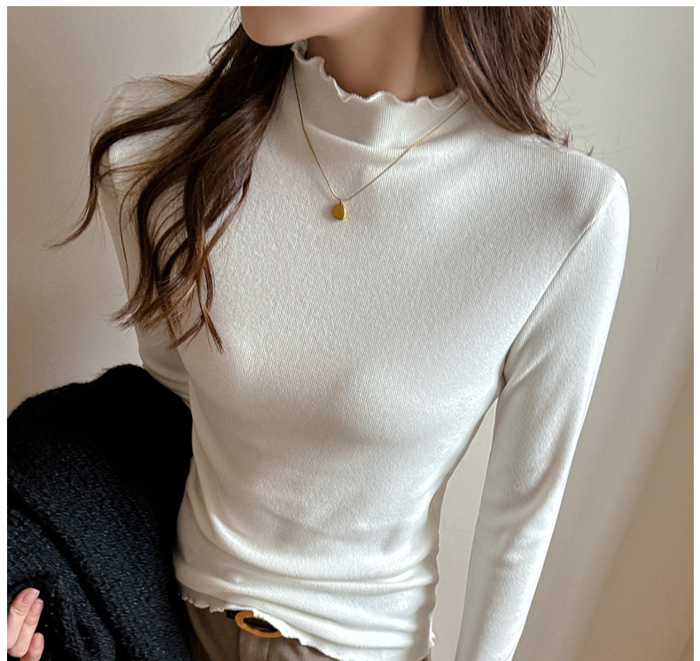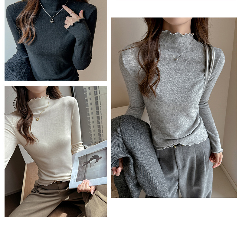 内搭打底衫女秋冬半高领2025年新款高级感木耳边洋气修身上衣