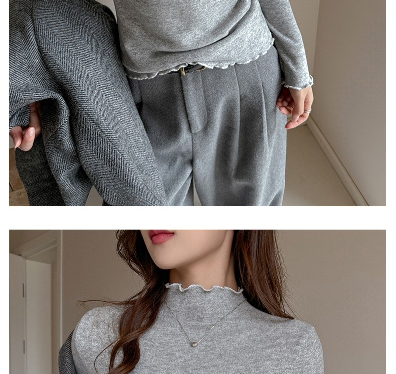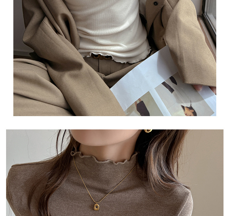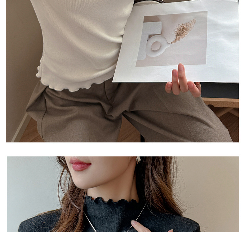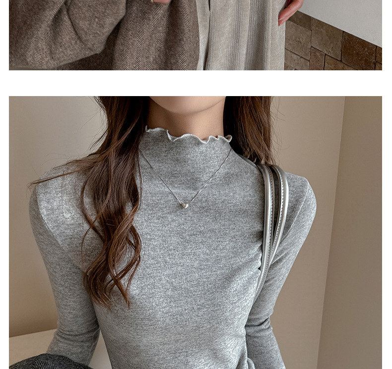 仿羊绒木耳半高领秋冬长袖打底衫女内搭正肩t恤高级感可外穿上衣