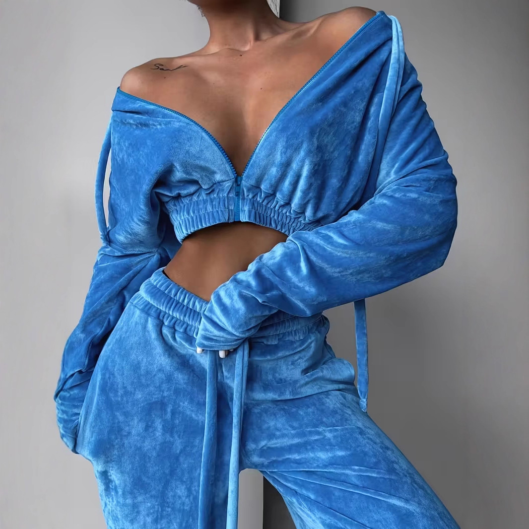 TK欧洲站外贸女装跨境运动服金丝绒套装高级感休闲时尚纯色两件套