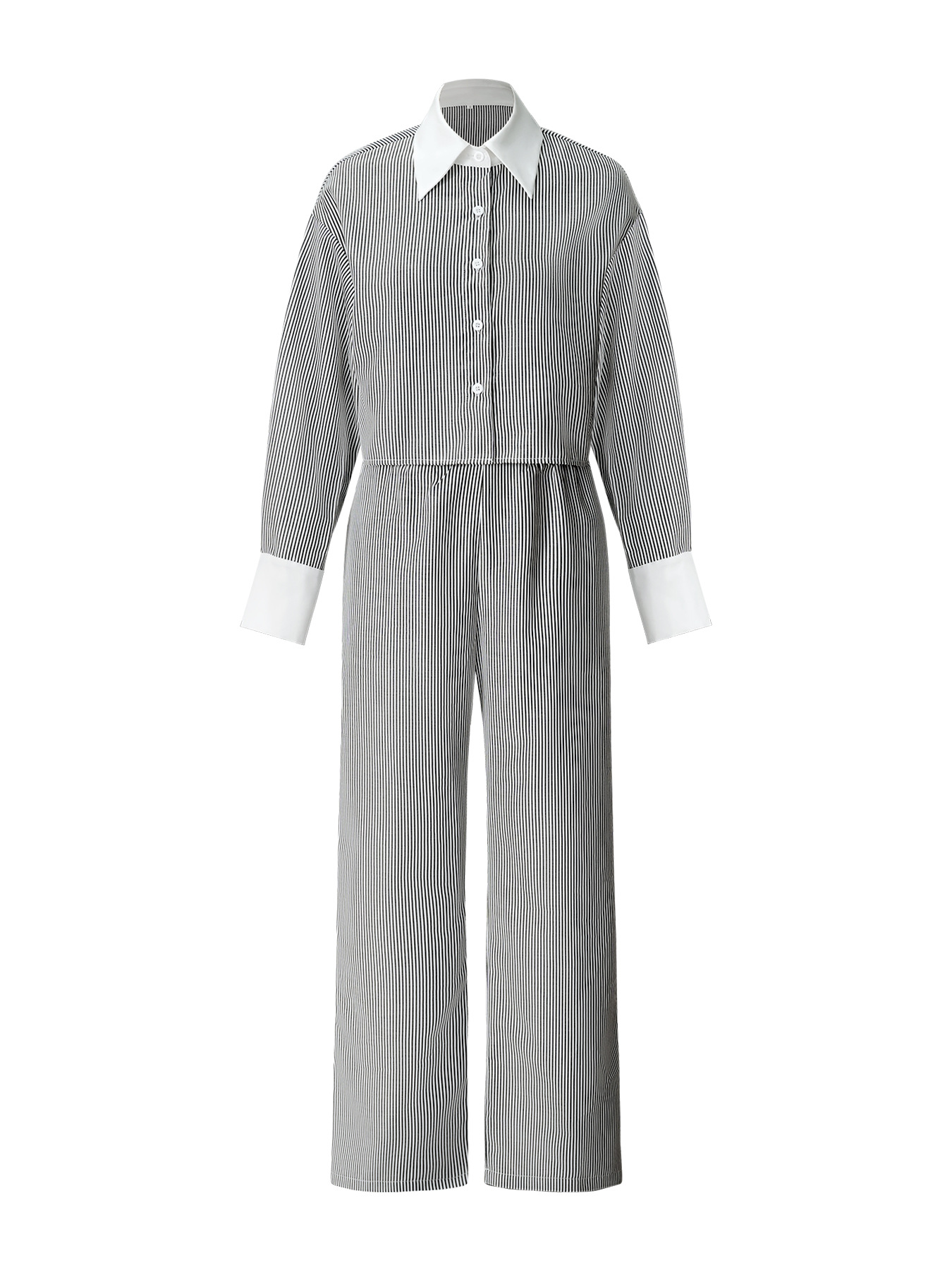 2024年欧米風クロスボーダー秋新作セットアップ 長袖ボタン留め無地スリムトップスとロングパンツのツーピースセット レディース