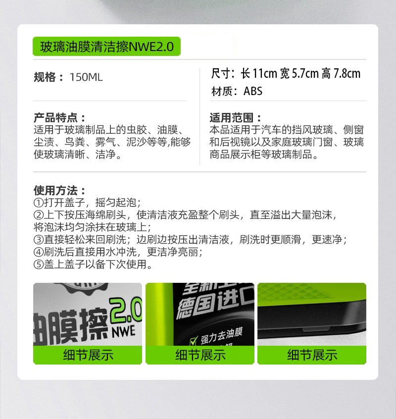汽车玻璃清除油膜去除剂强力擦污净前挡风清洗后视镜镀膜清洁刷