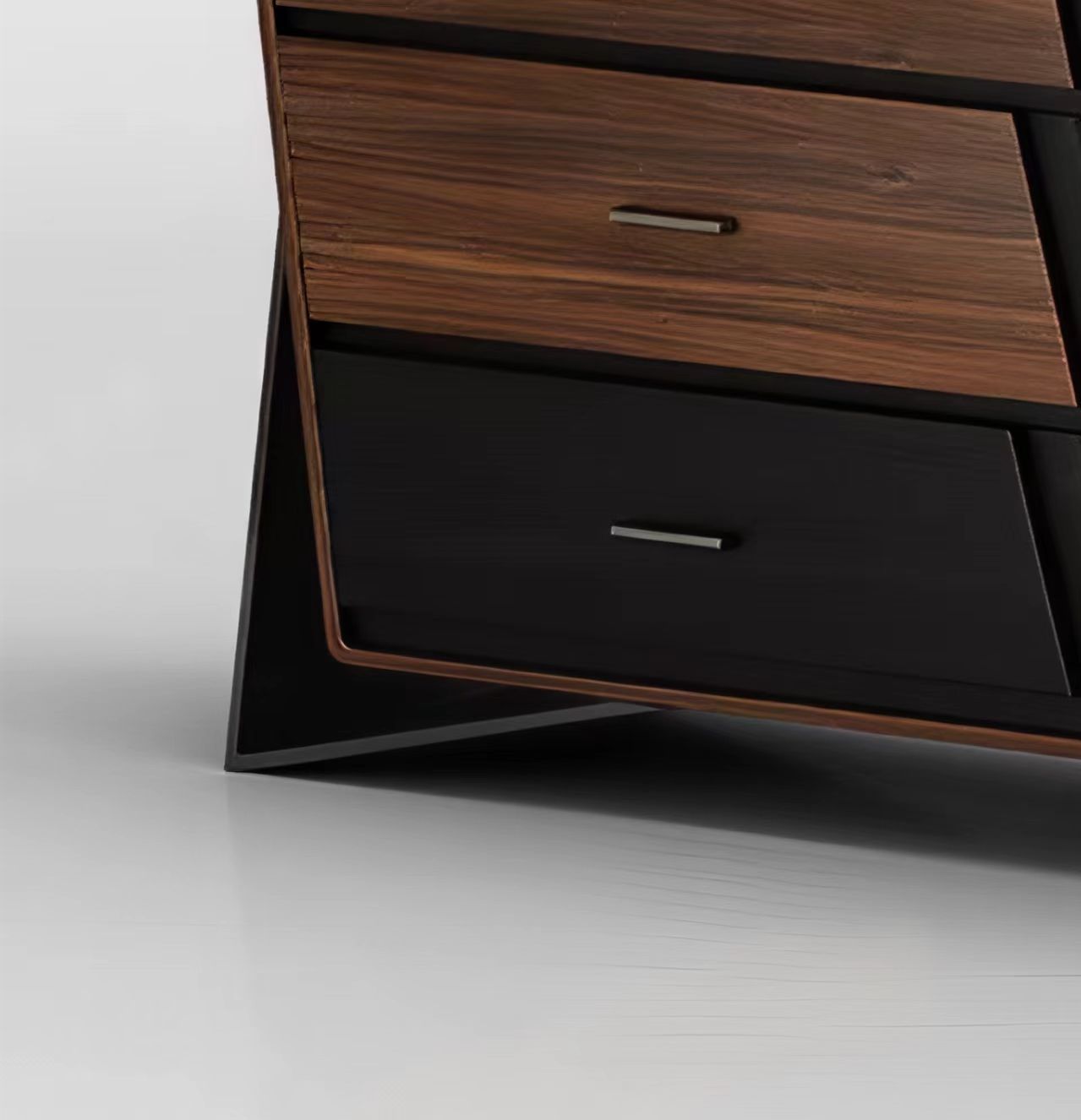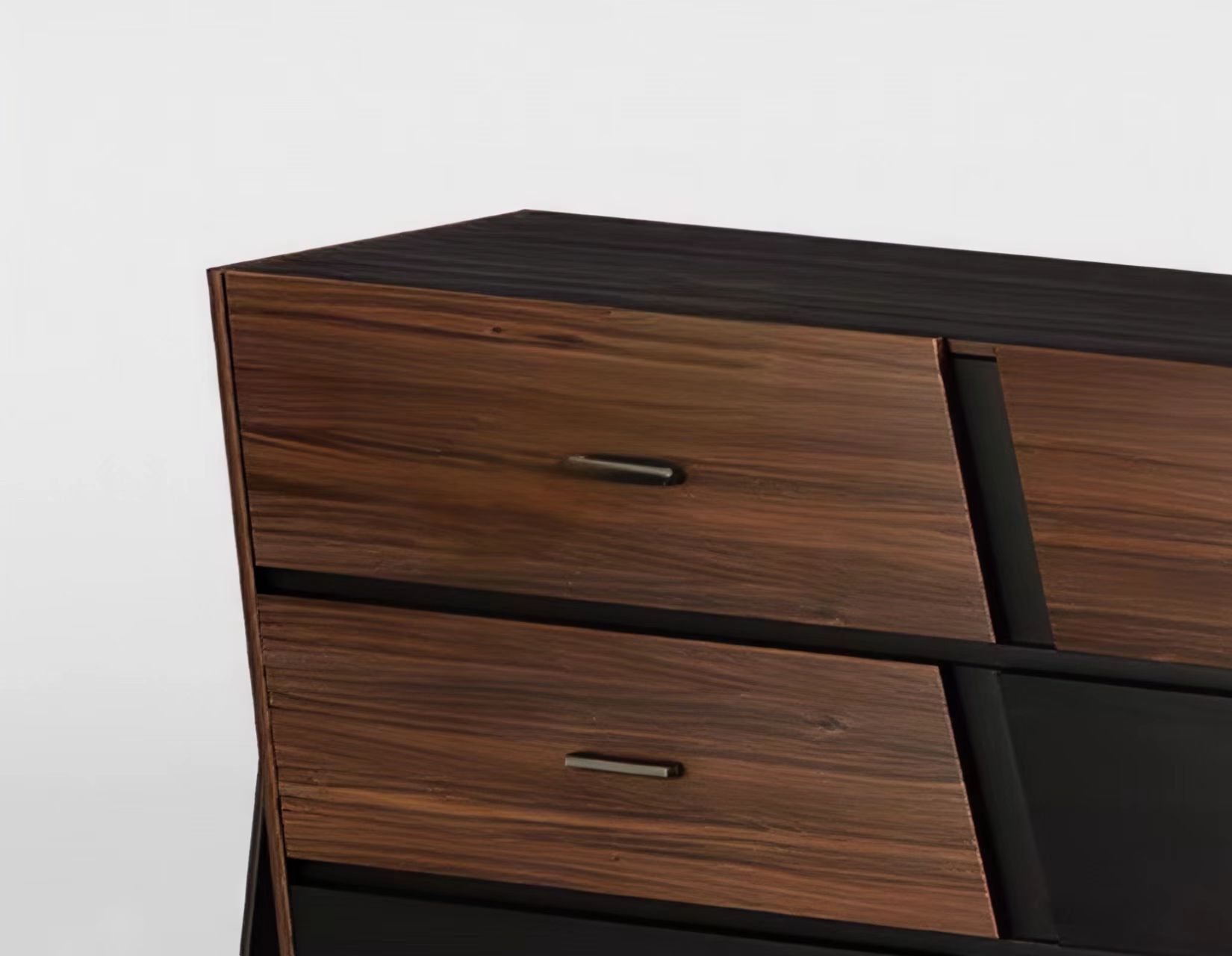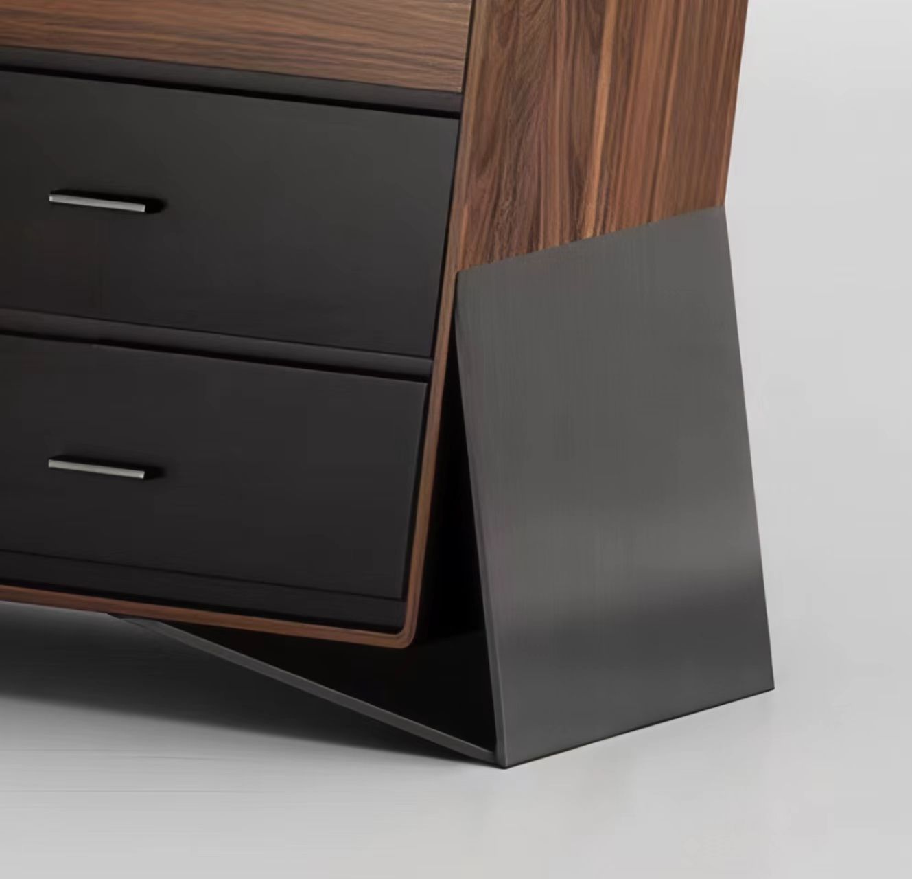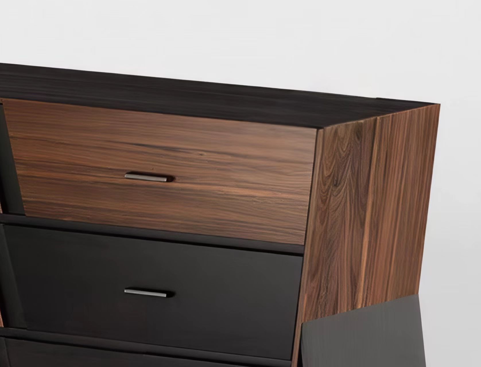 胡桃色加黑色木纹!拖底缓冲轨道加布纹抽屉!多层实木,采用钢板底座!整装!