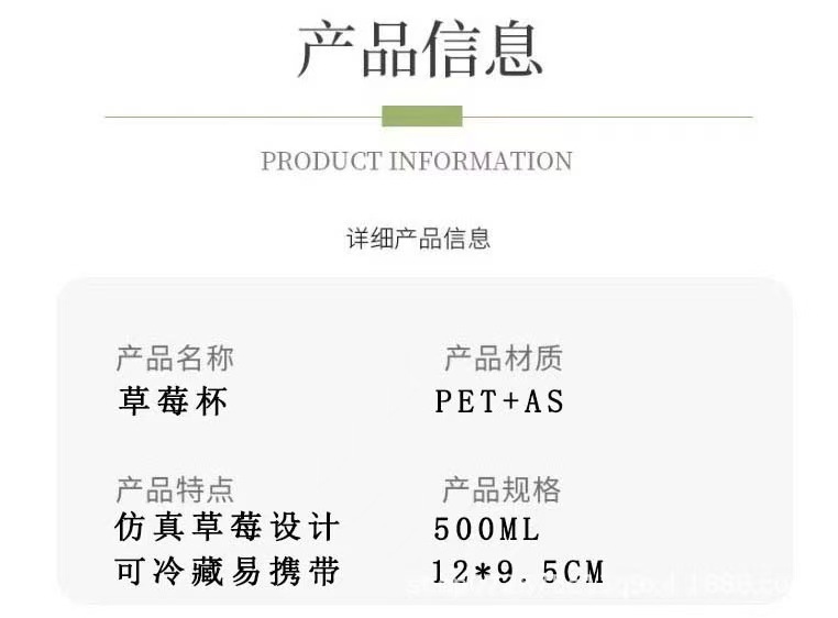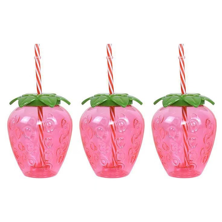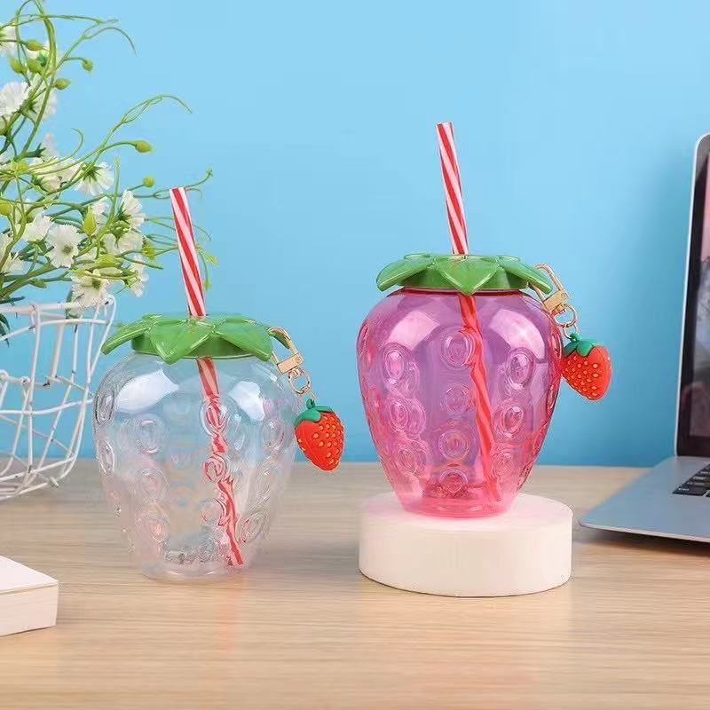 跨境草莓杯子高颜值透明可爱网红吸管杯一次性水杯塑料杯厂家批发