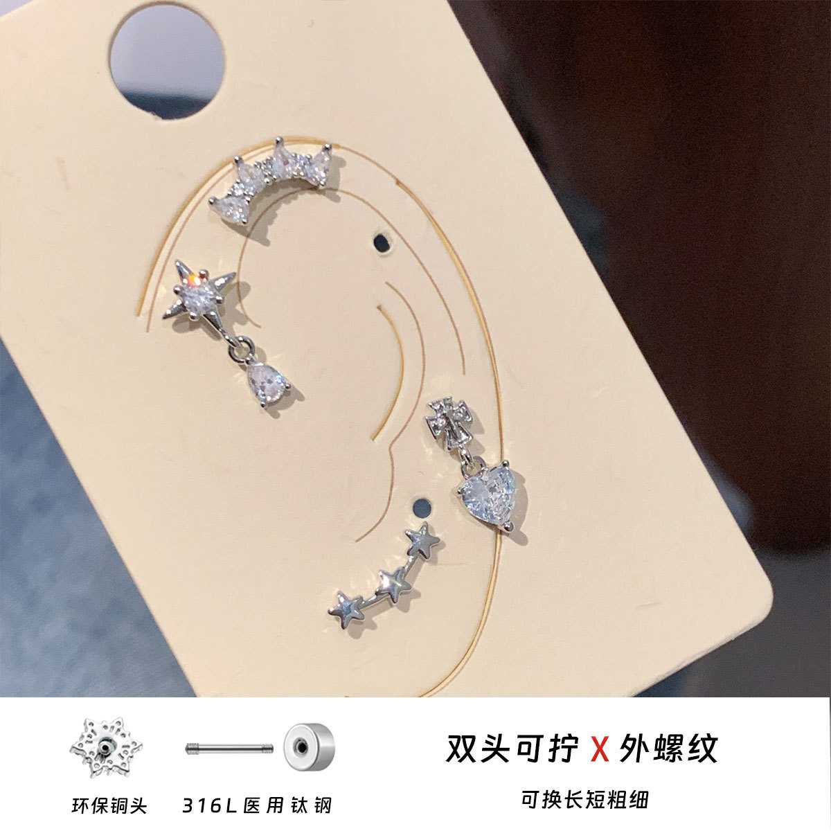316L チタン鋼フラッシュスターラブウィング耳骨ネイルチタン鋼絶妙でユニークな多用途ジルコン耳スタッドイヤリング