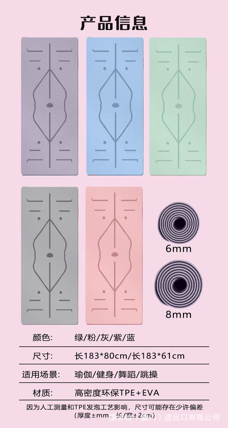 tpe瑜伽垫初学者双层瑜伽垫防滑抓地耐磨减震静音跳操垫防滑加厚